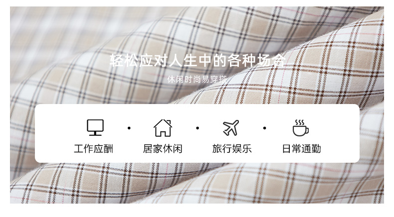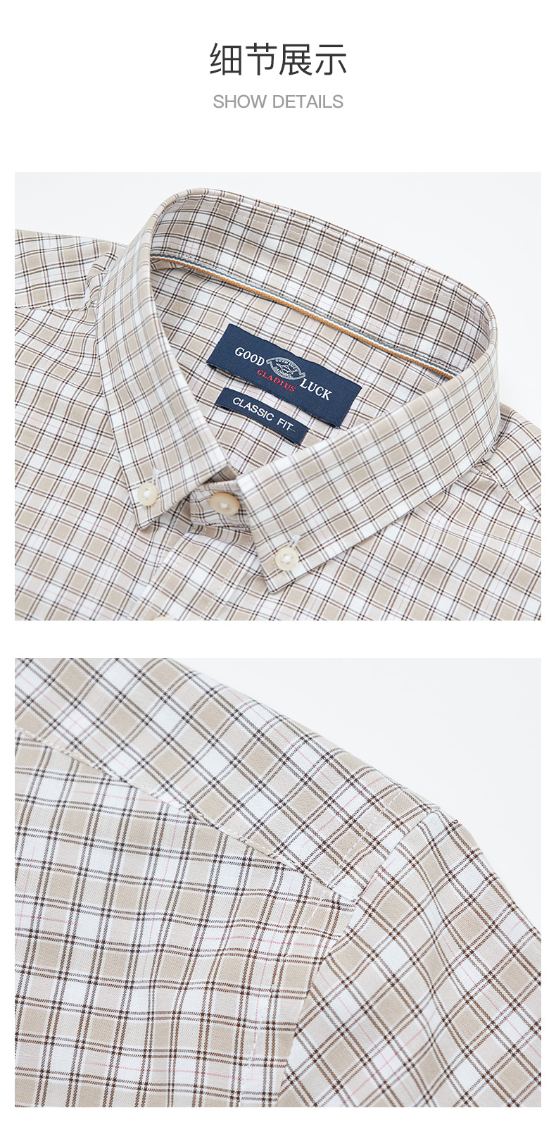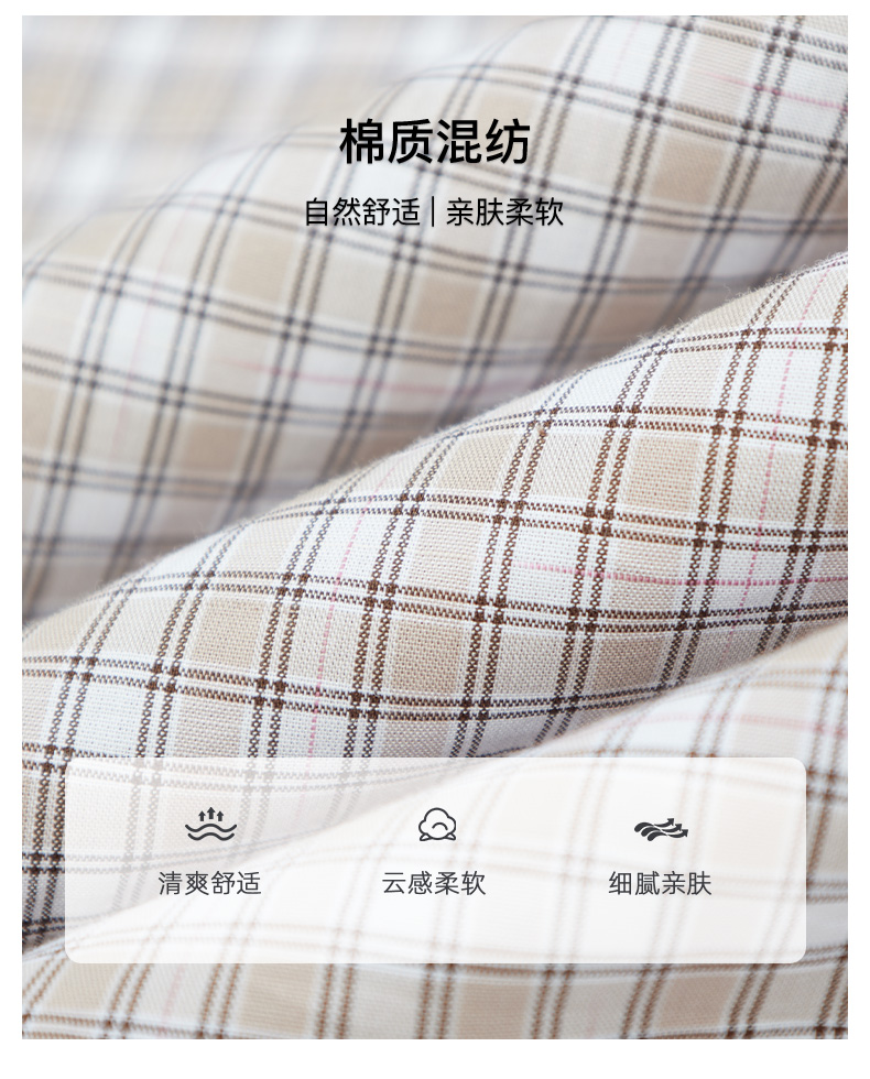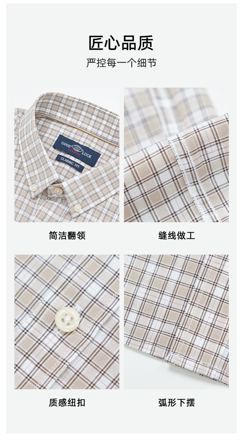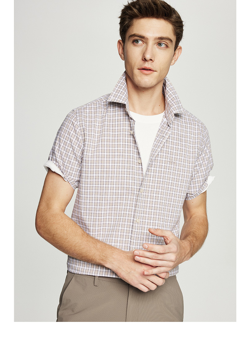 【棉混纺】德鲨鲨鱼短袖格子衬衫男2026夏新款休闲衬衣男