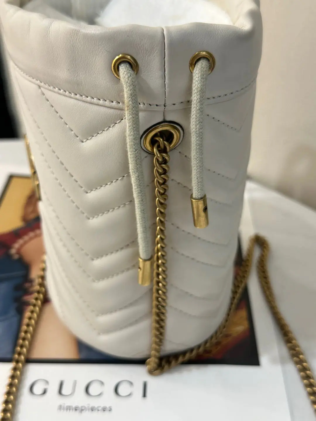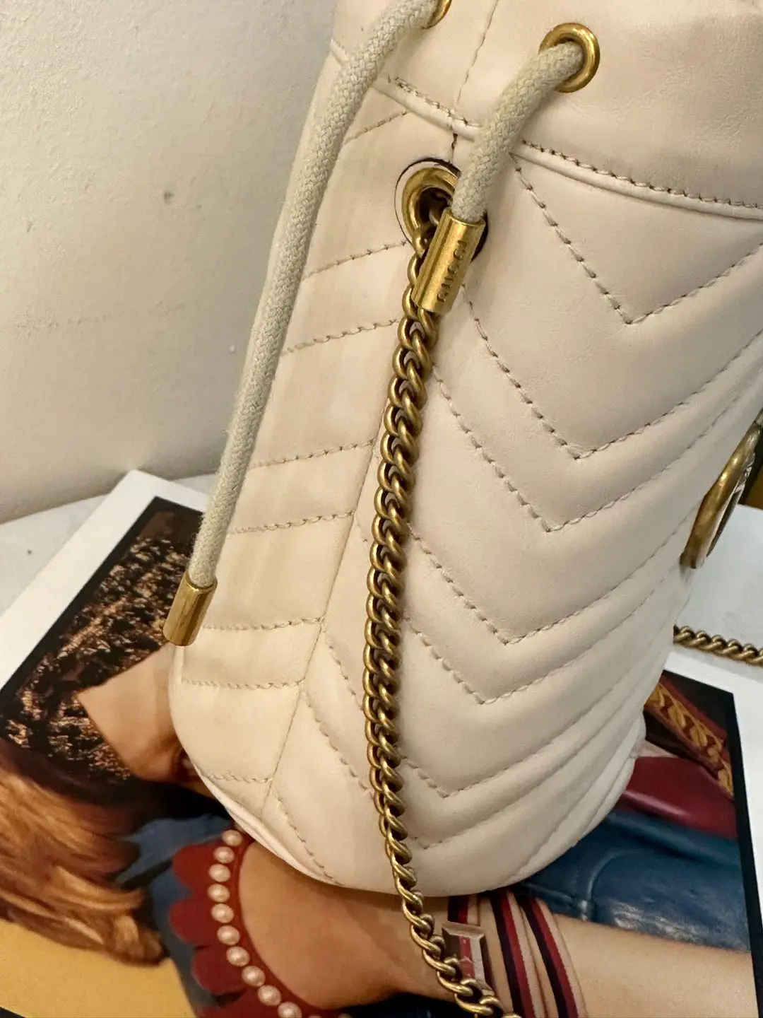 【商品详情】 正品二手 gucci 马蒙 mini 白金 水桶包👏97新 12×17。温柔可爱