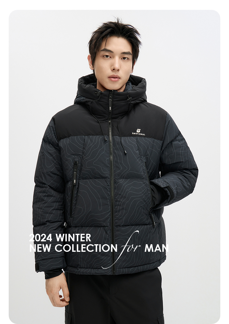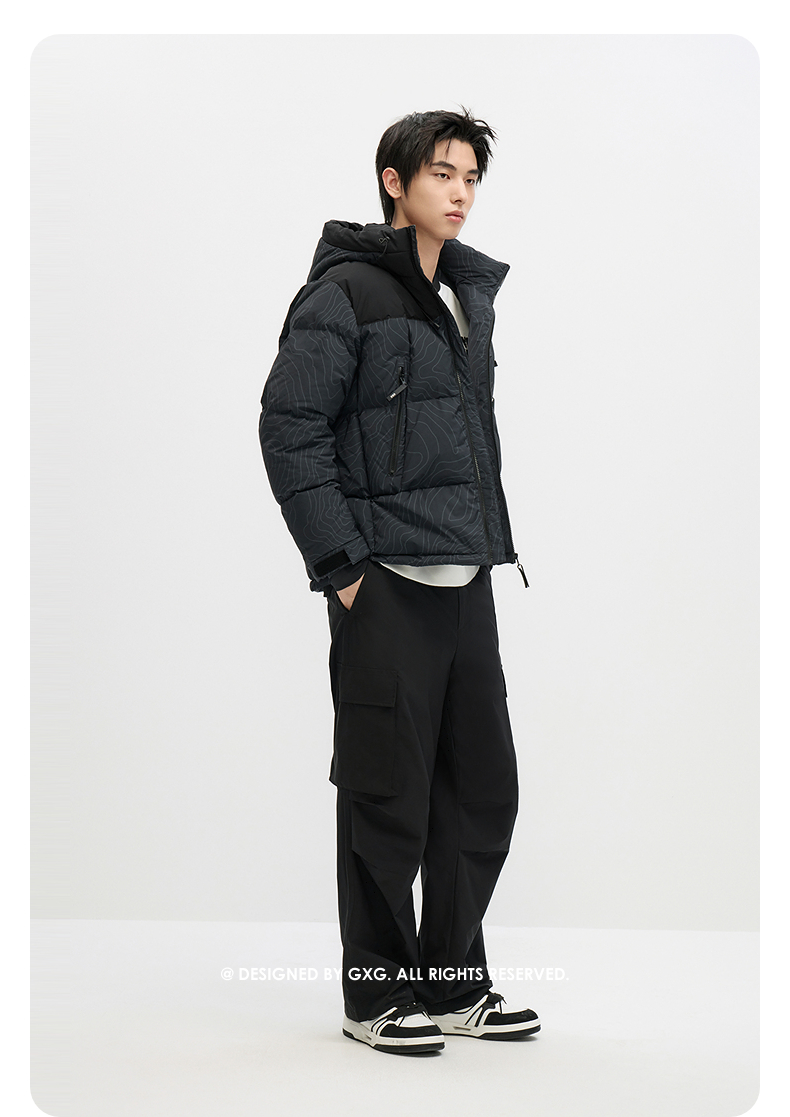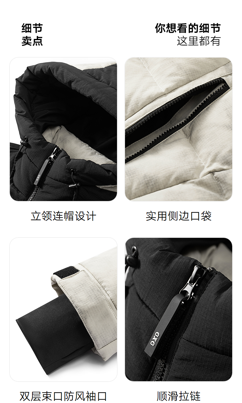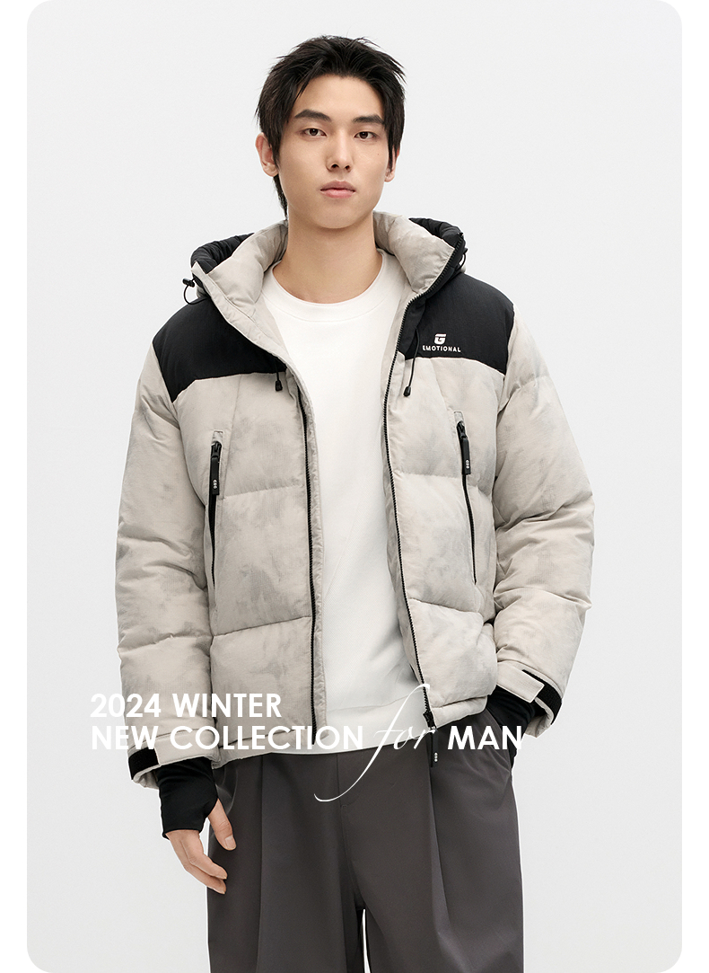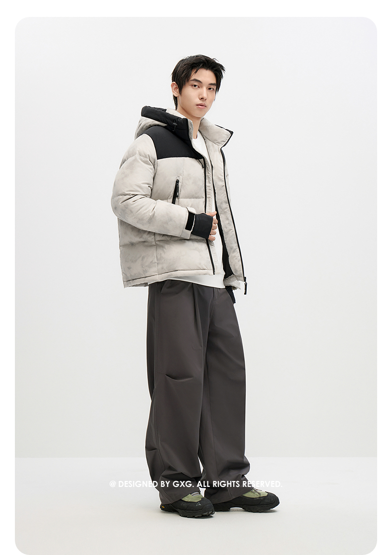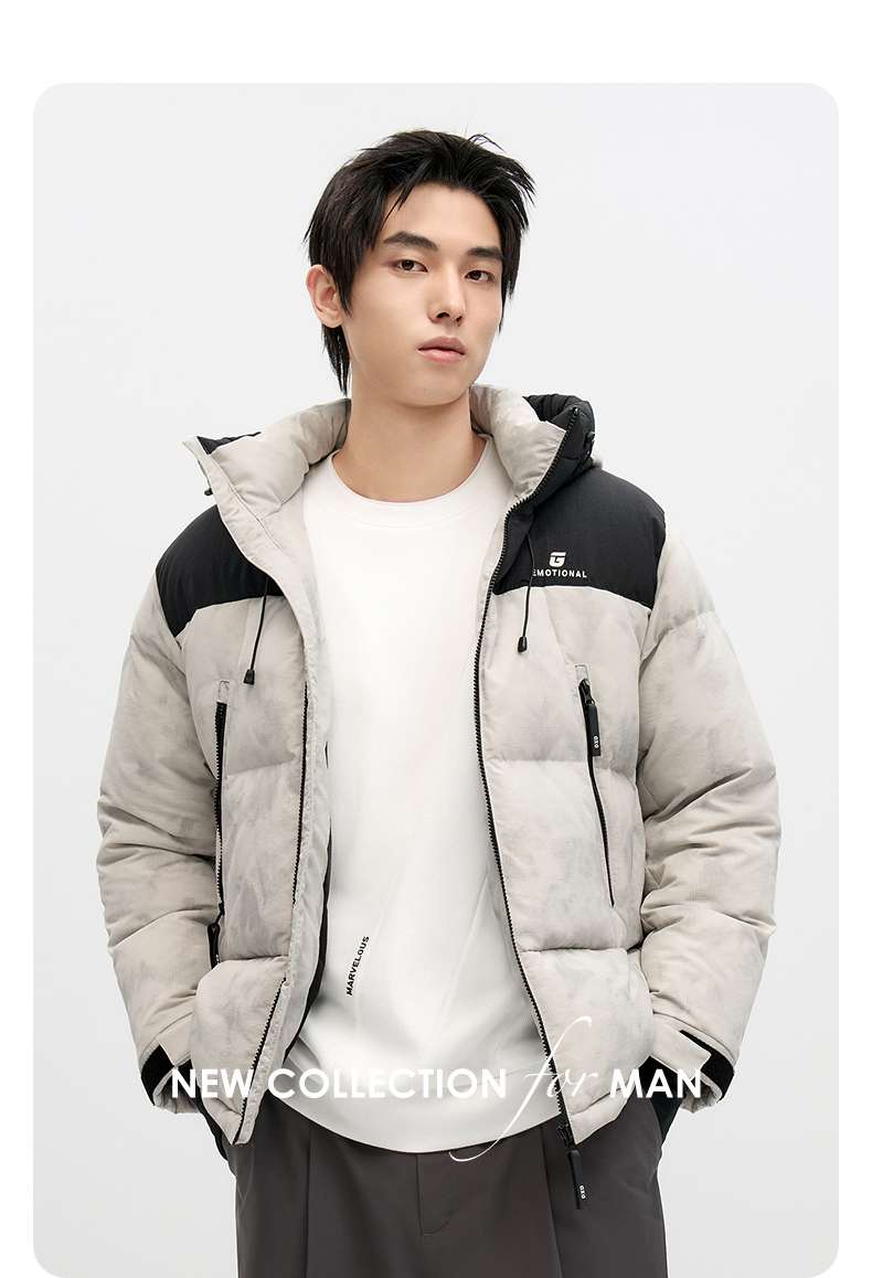GXG男士撞色休闲百搭保暖连帽短款羽绒服男外套鸭绒冬季热卖
