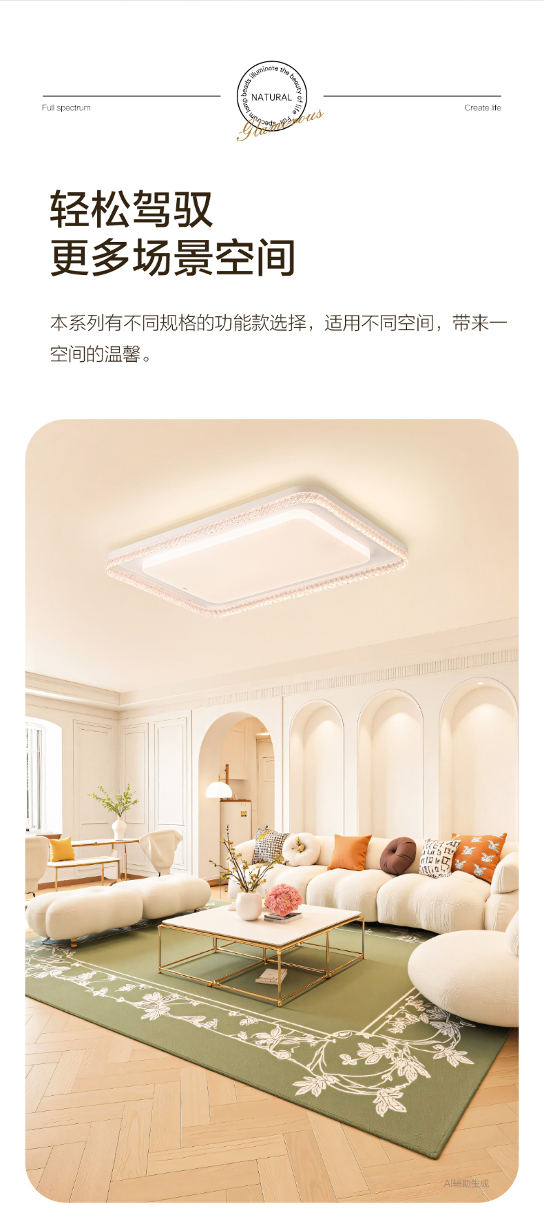 欧普(OPPLE)心澈客厅简约现代奶油风仿水晶光效吸顶灯