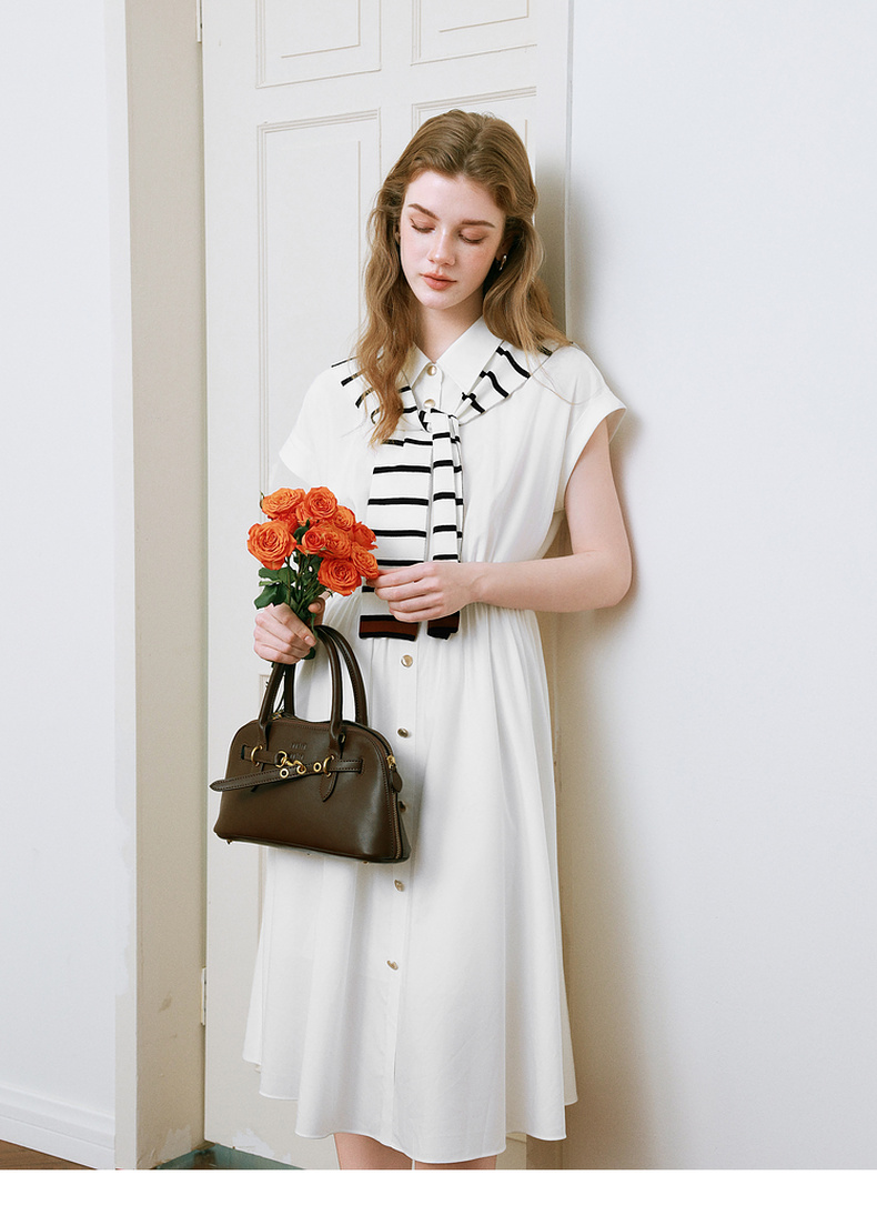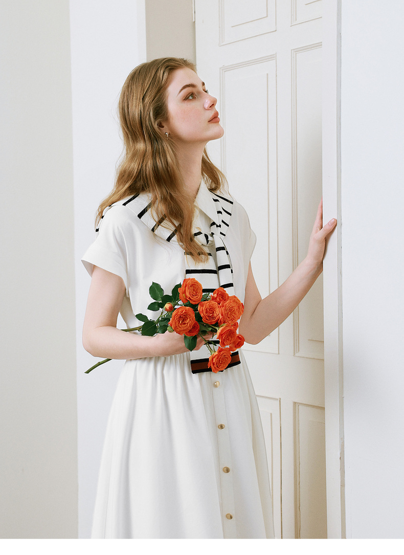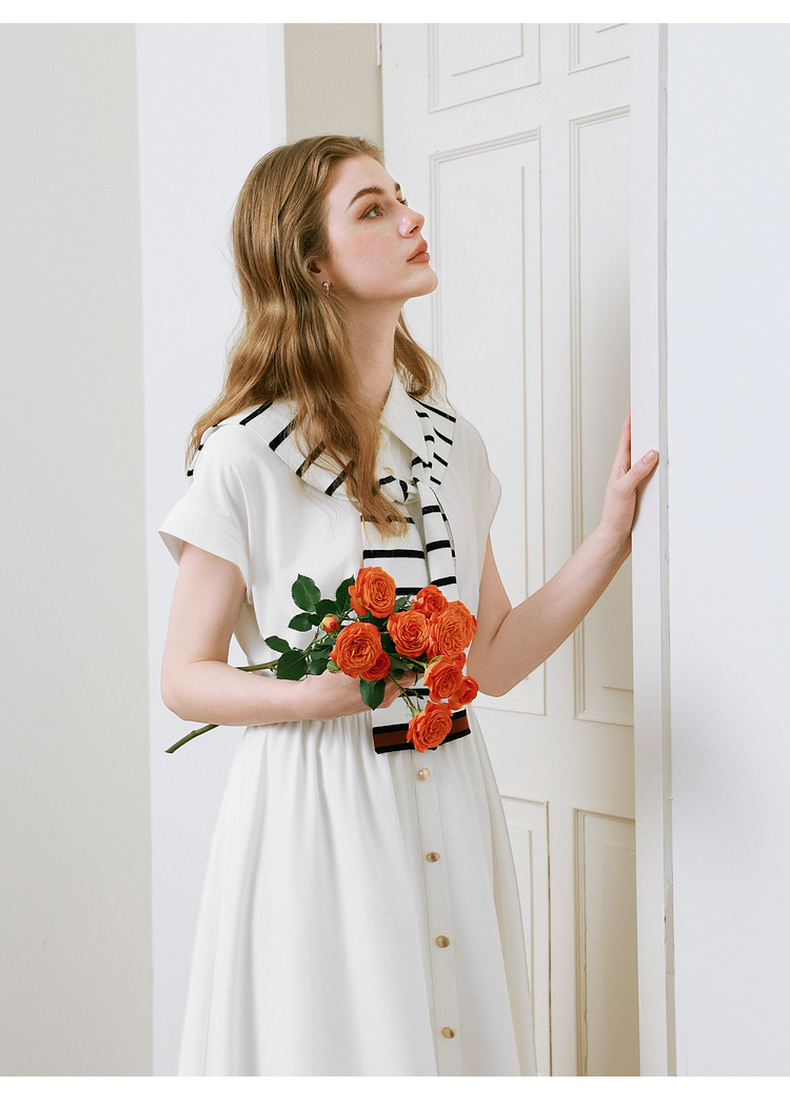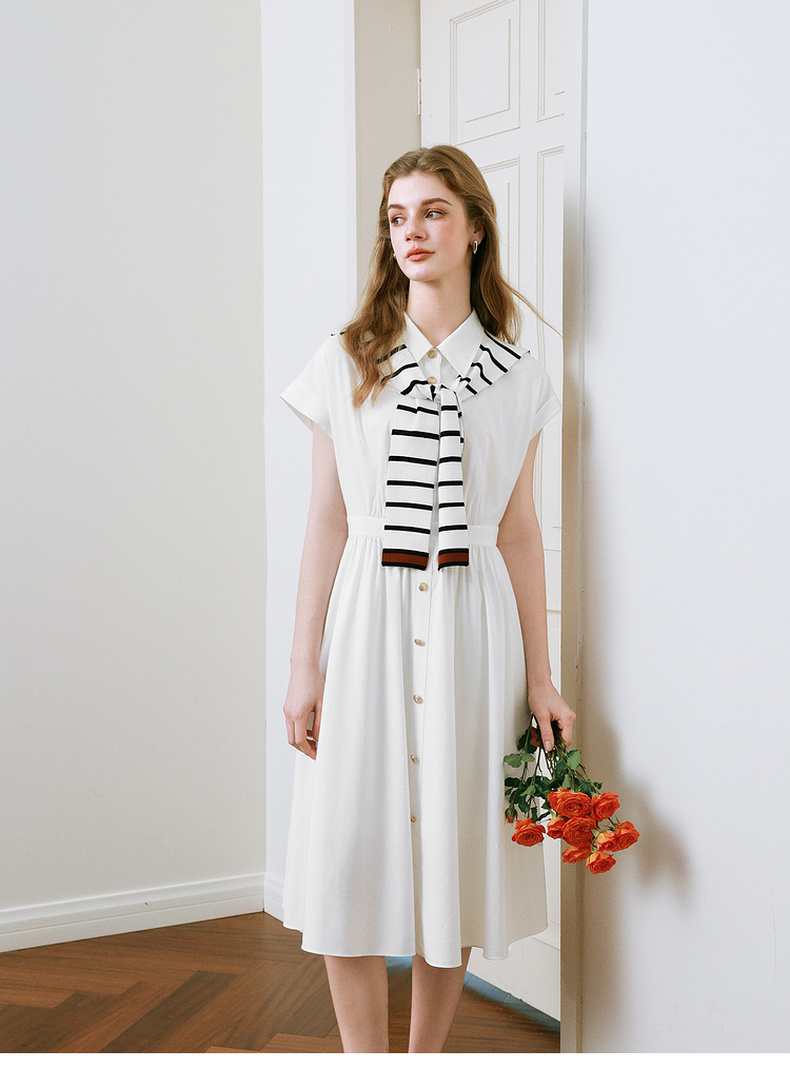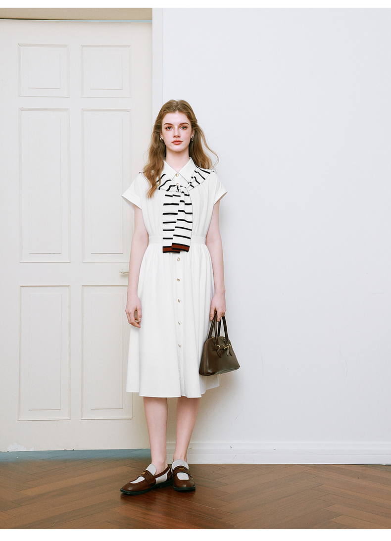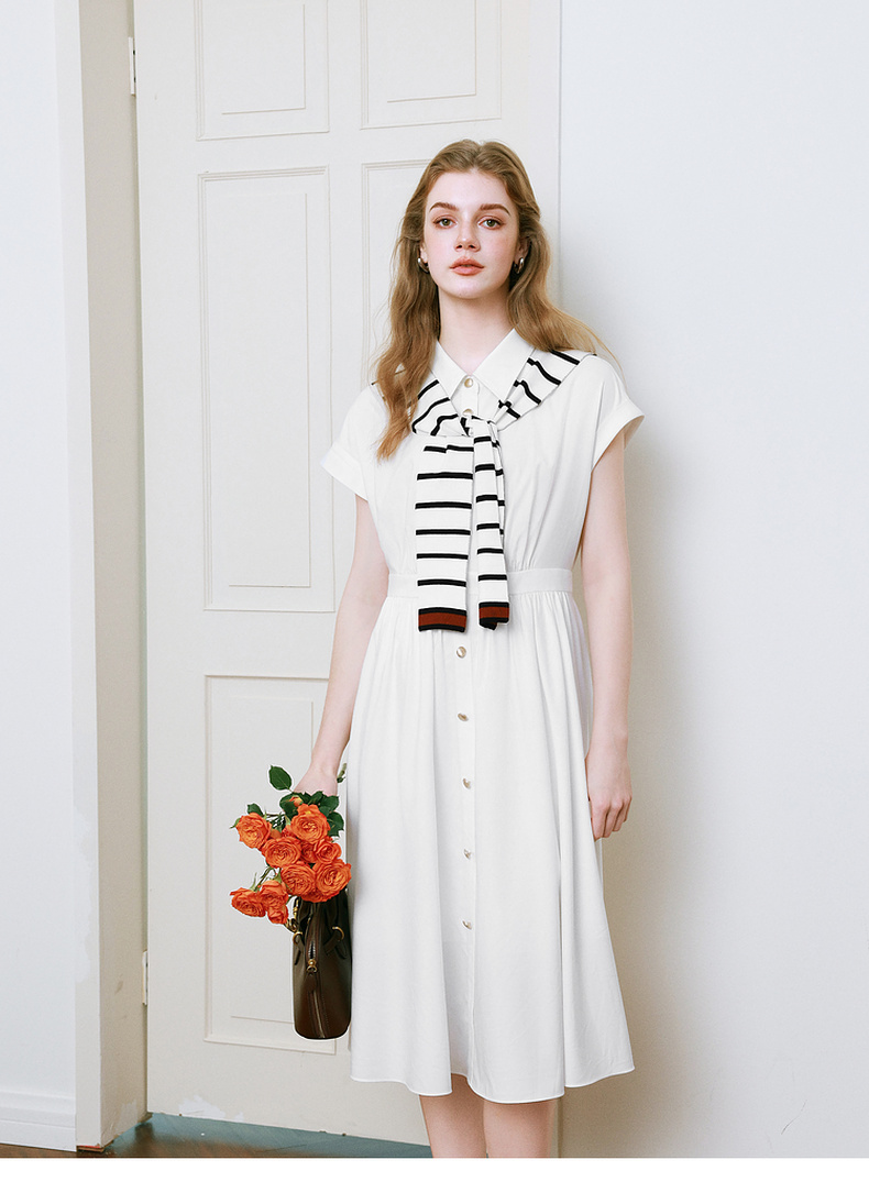 【商场同款】诗凡黎撞色披肩连衣裙25夏新款飞飞袖白裙3G4290281