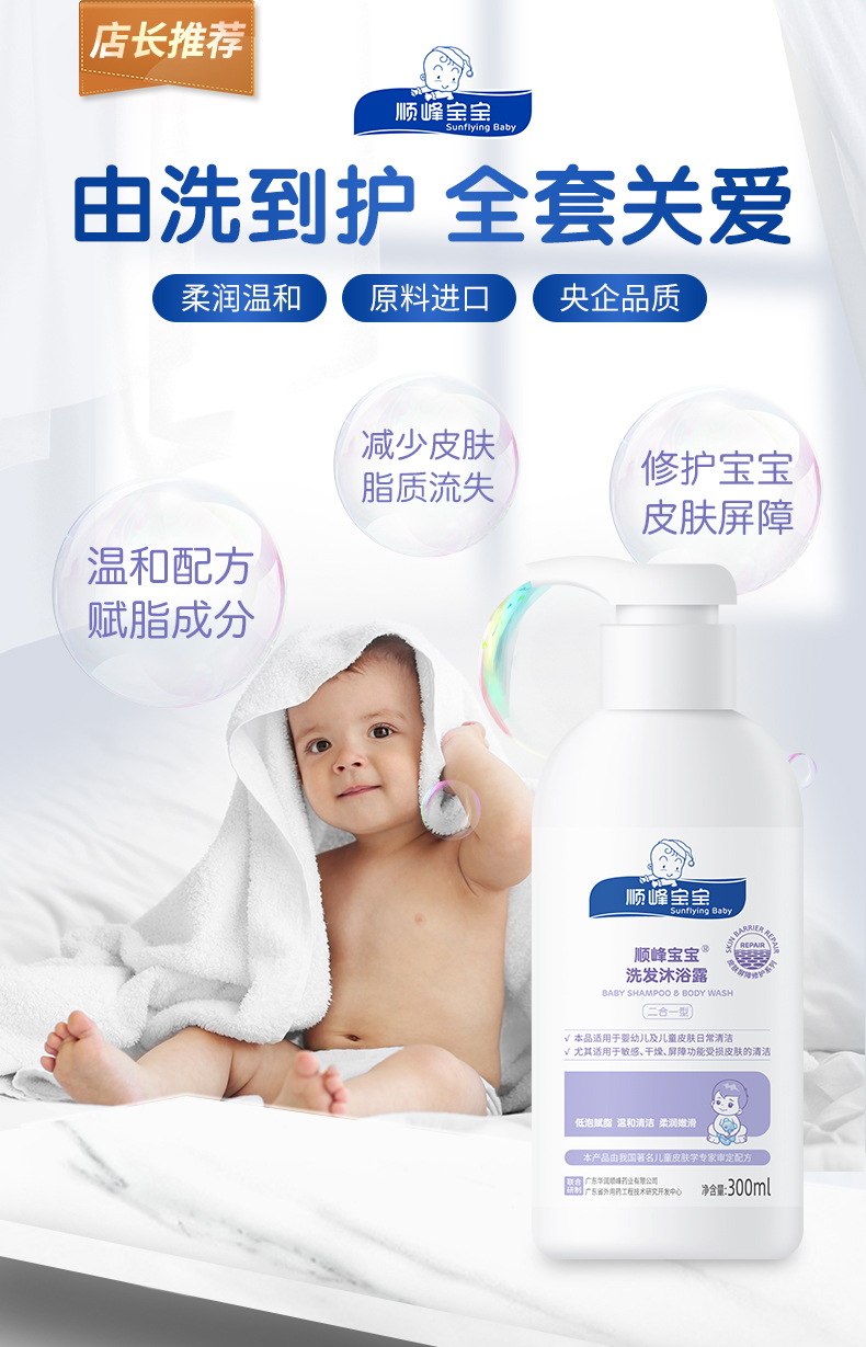 顺峰宝宝儿童专业护理套装:顺峰宝宝保湿特润霜225g/瓶 +洗发沐浴露300ml/瓶
