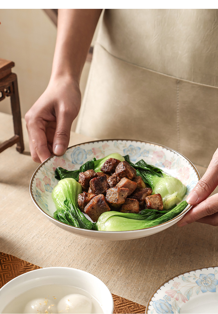 蓝宝牡丹会议盖杯 新心兰盖杯骨瓷茶杯