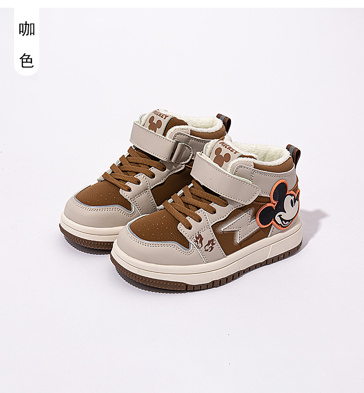 迪士尼男童棉鞋加绒2024新款冬季儿童鞋子卡通板鞋男孩高帮二棉鞋ZY24D001