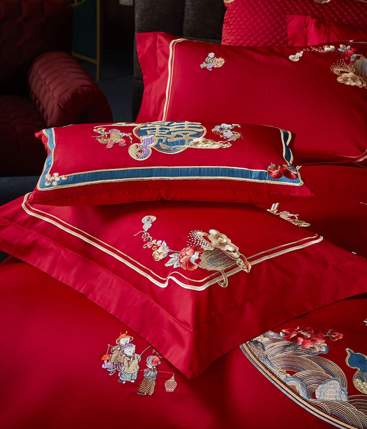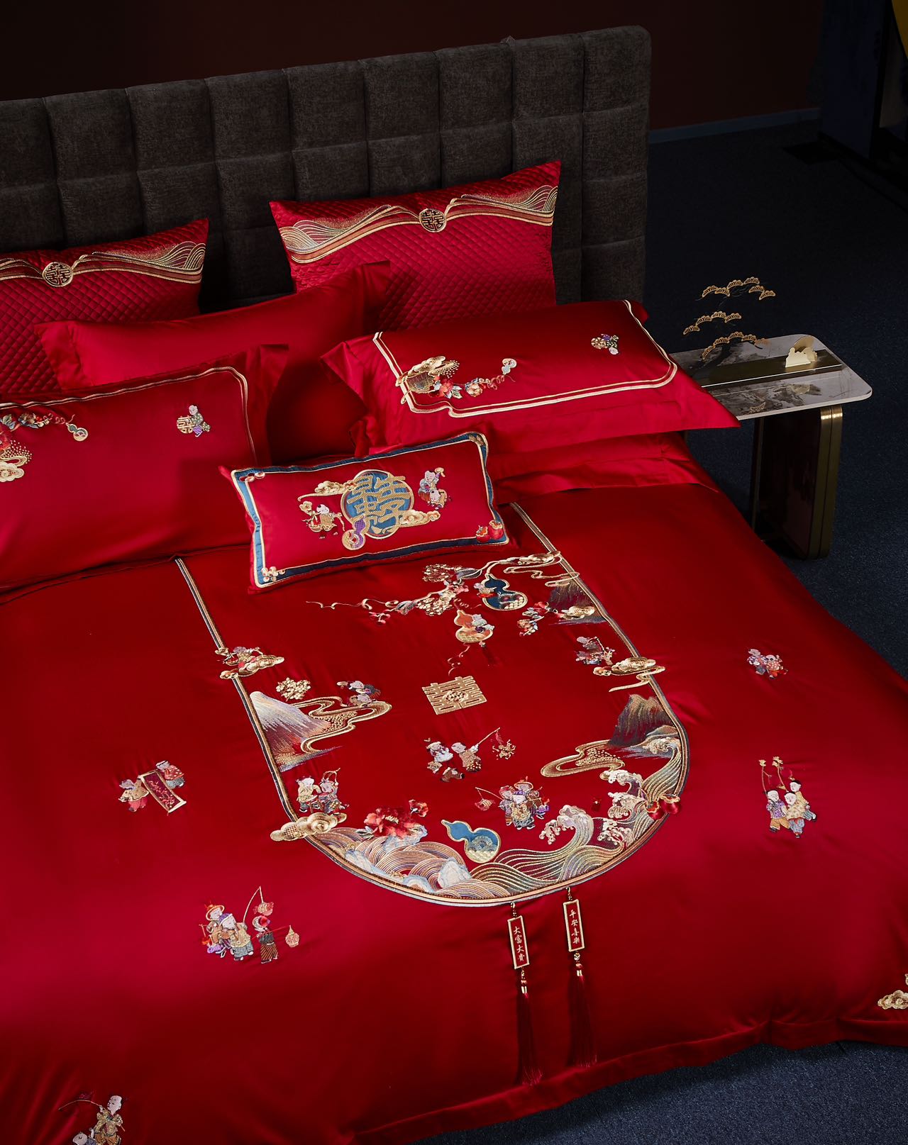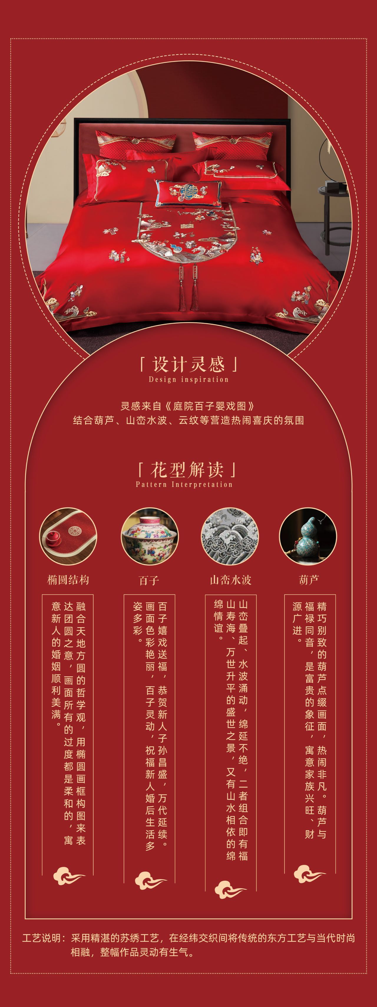 利路米家纺大红色百子图喜被高档婚房结婚六件套福气满满