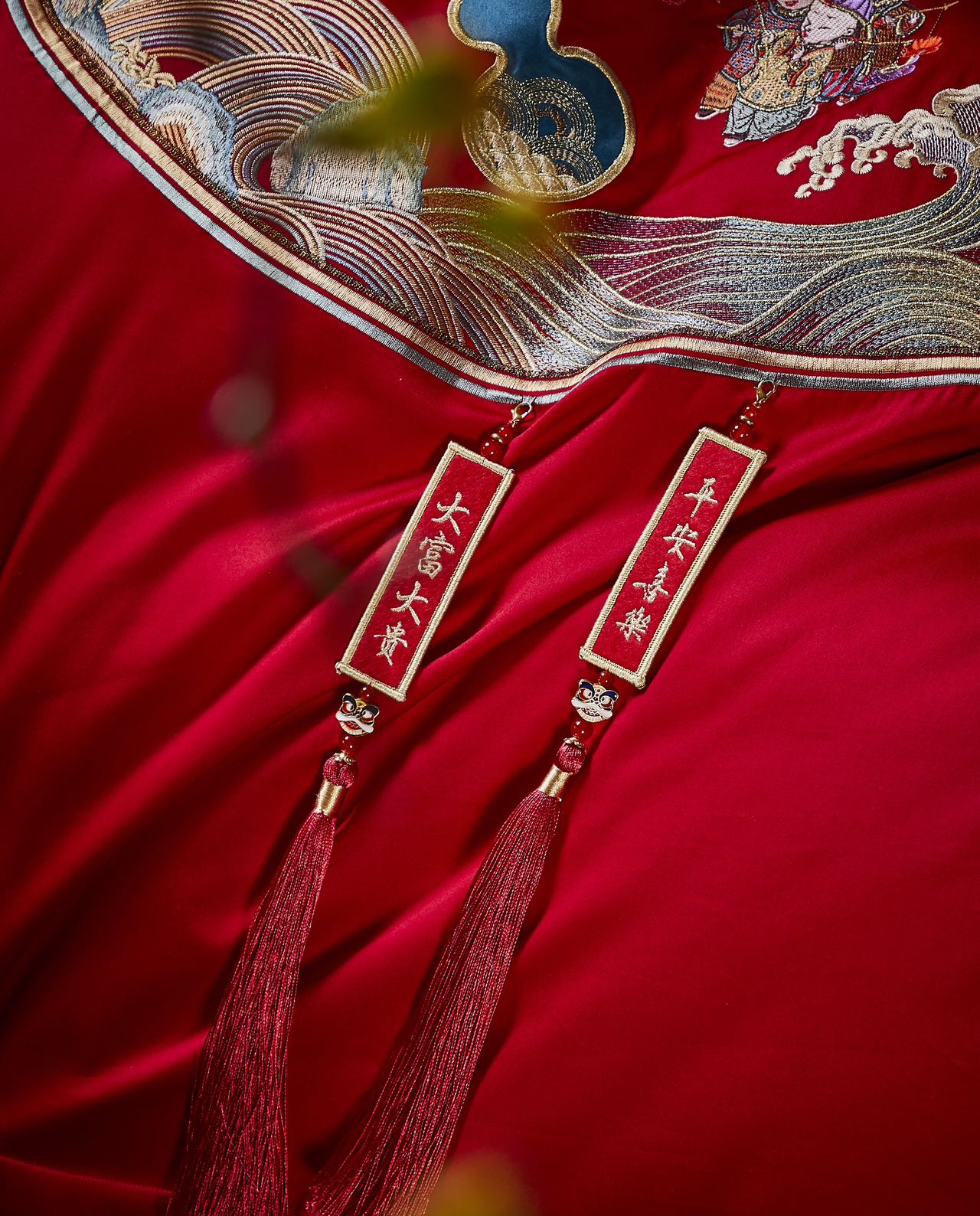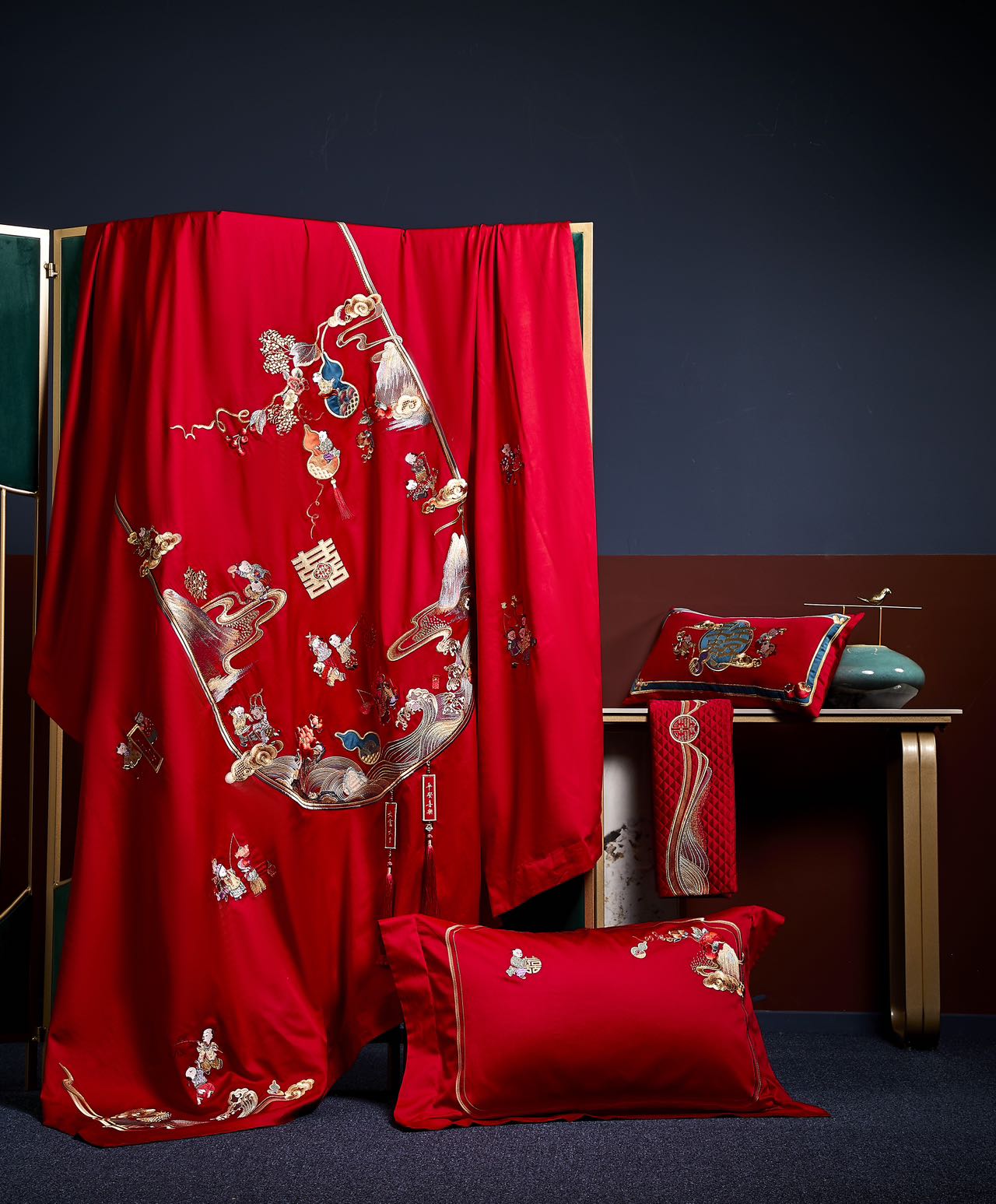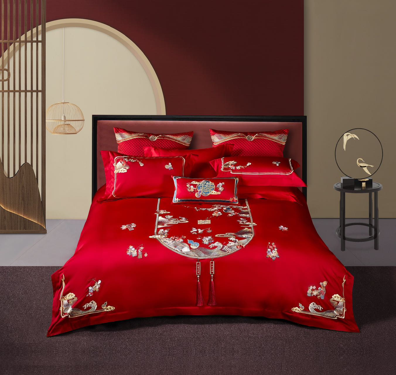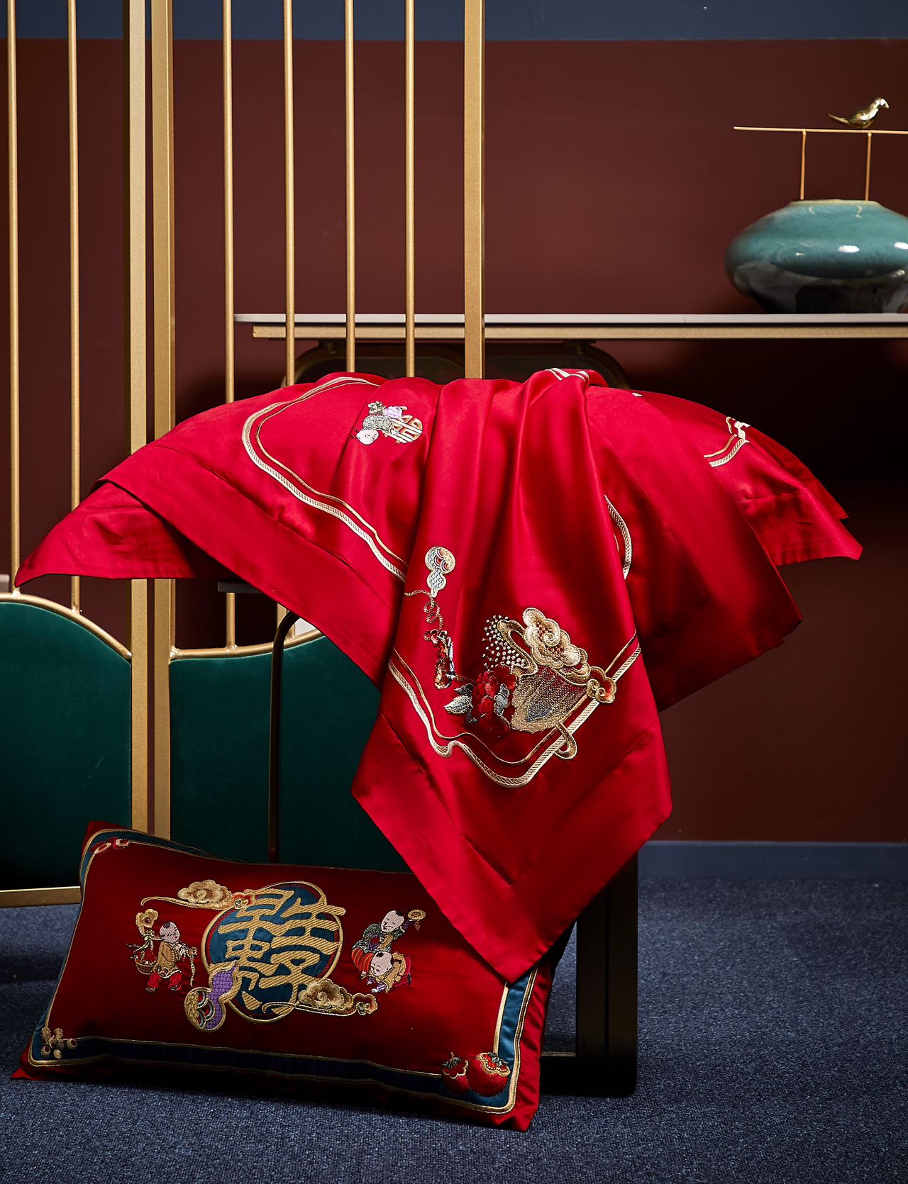 利路米家纺大红色百子图喜被高档婚房结婚六件套福气满满