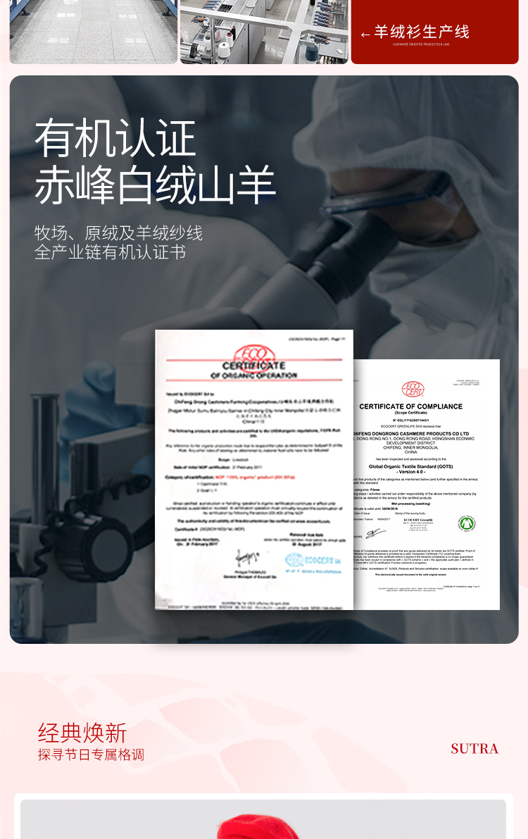 东黎羊绒是赤峰东荣集团自主品牌,自有牧场/羊绒制品全产业链优势,实现了羊绒从“牧场”到“商场”的华丽转变。