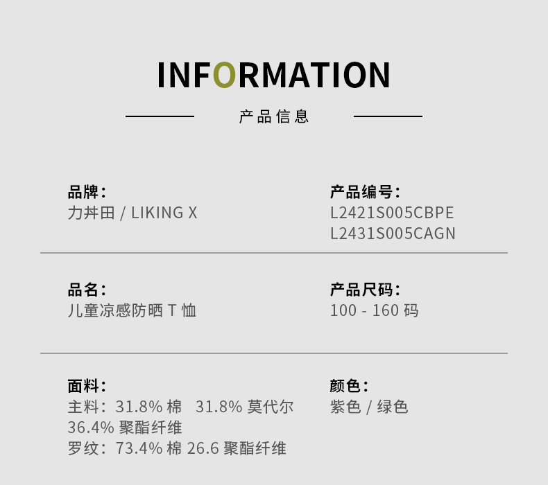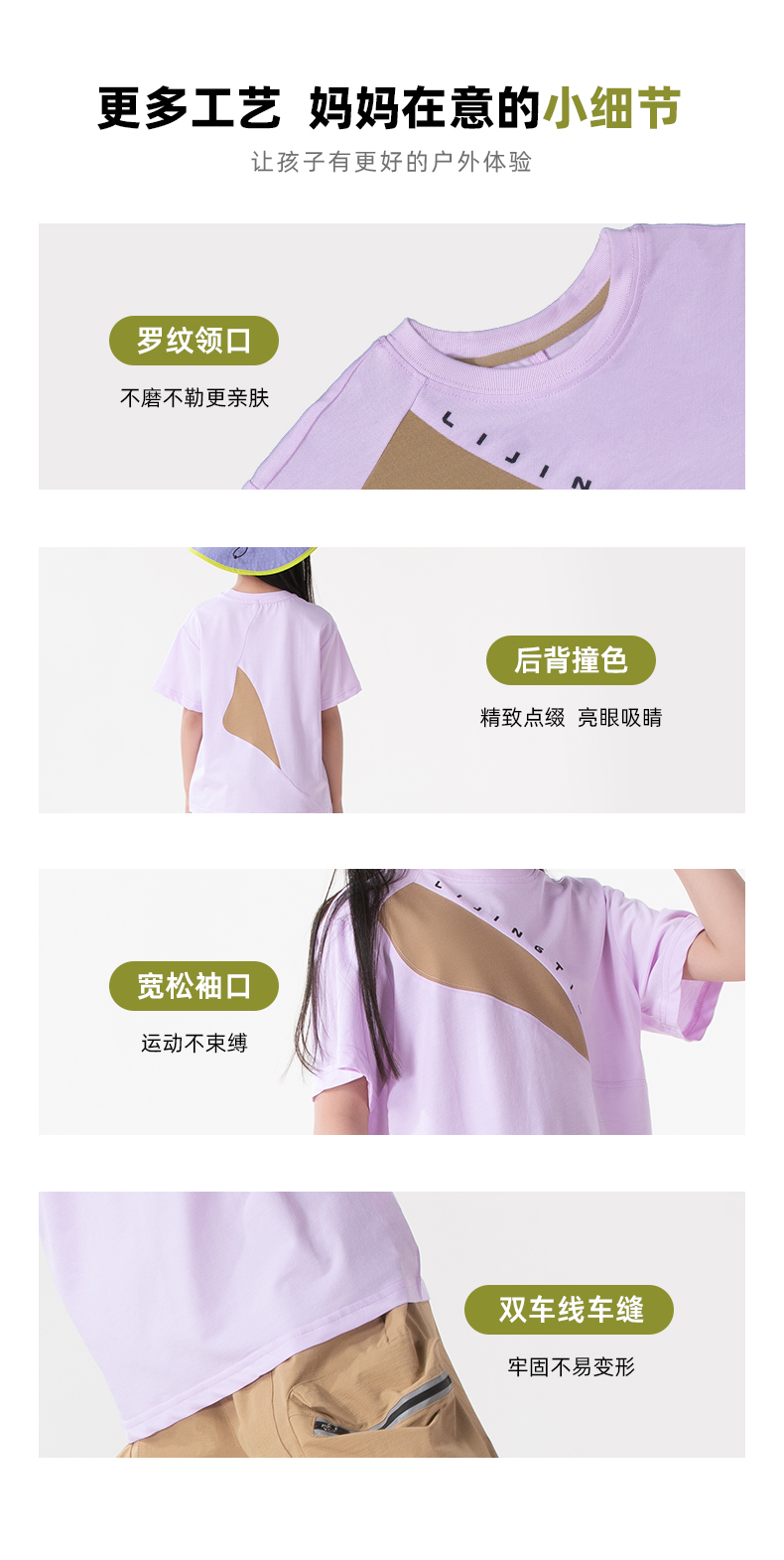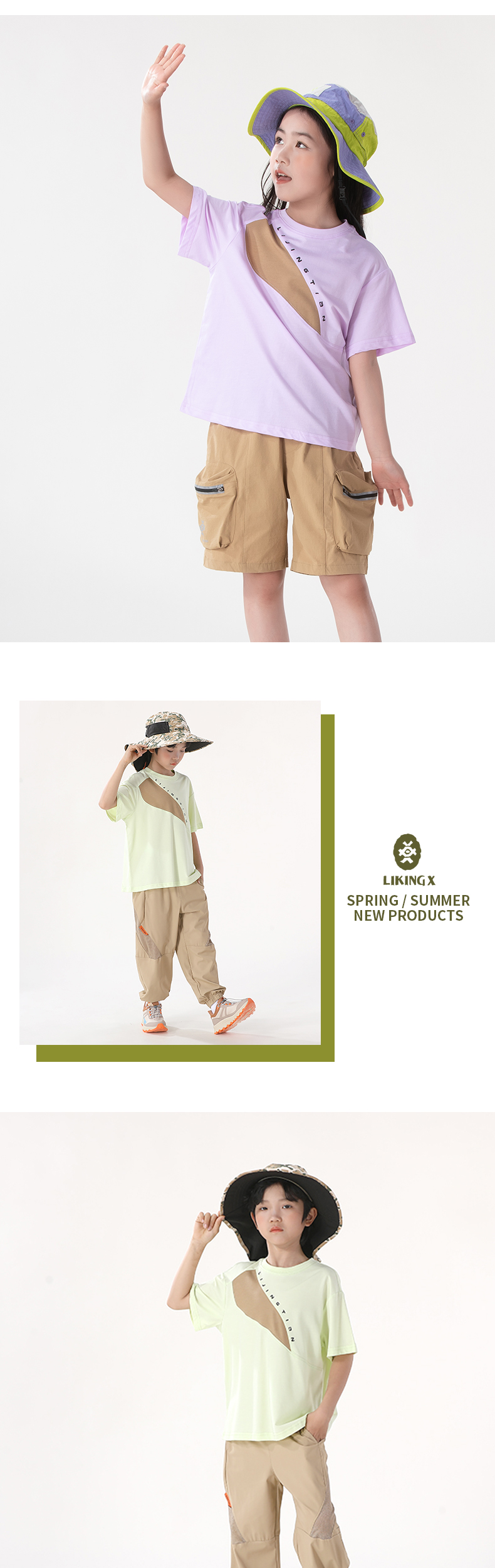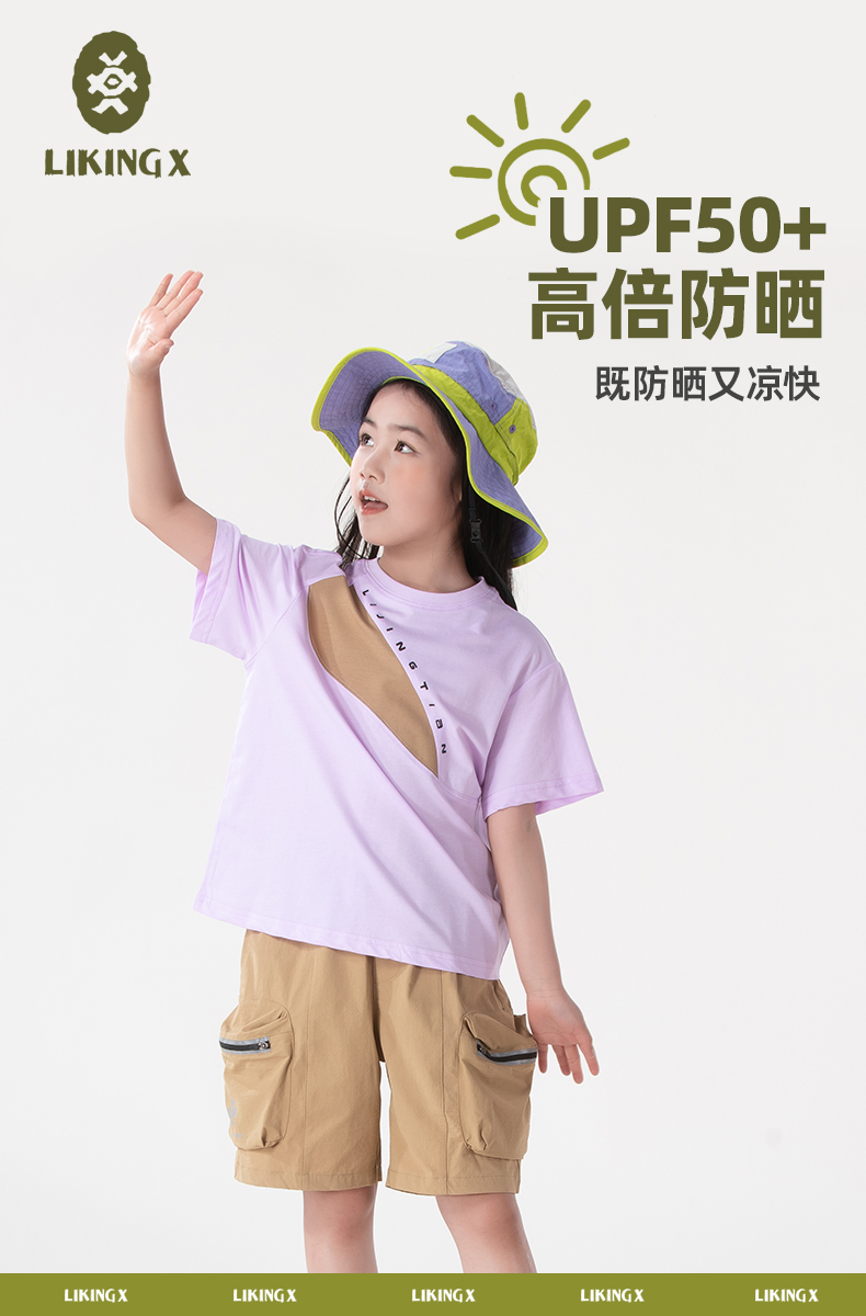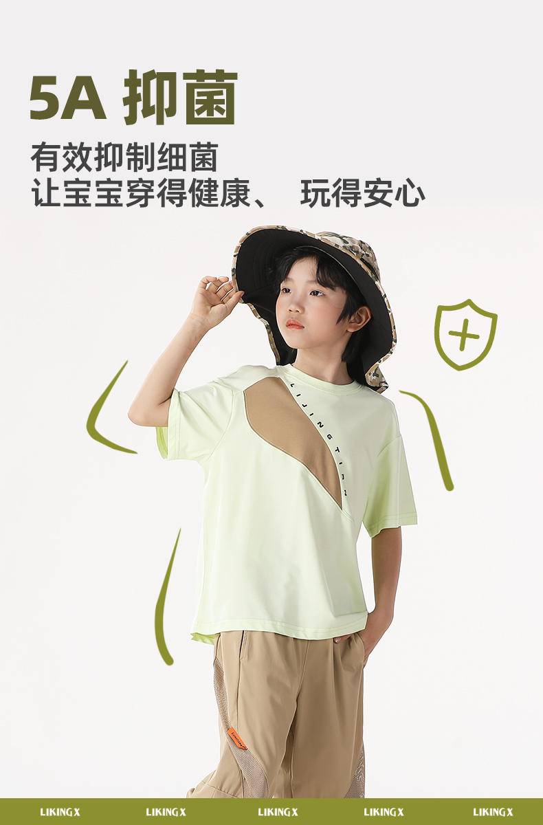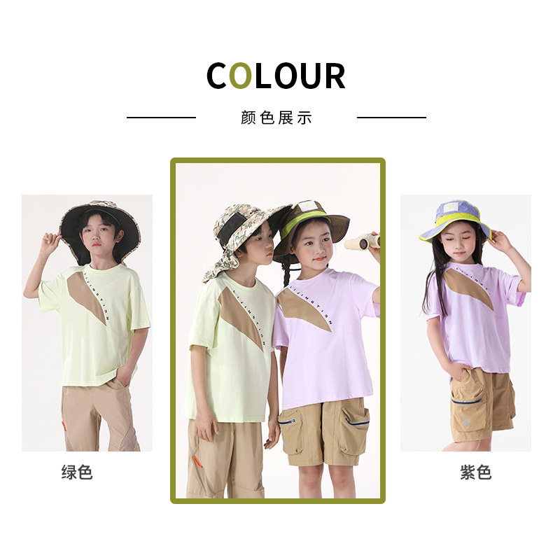 力丼田儿童户外森林系列 撞色短袖T恤绿色 UPF50+凉感抑菌 L2431S005CAGN