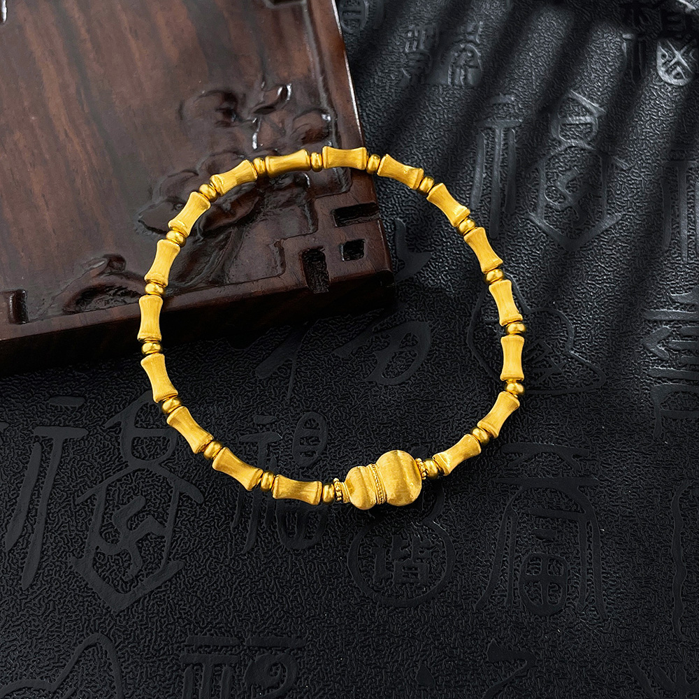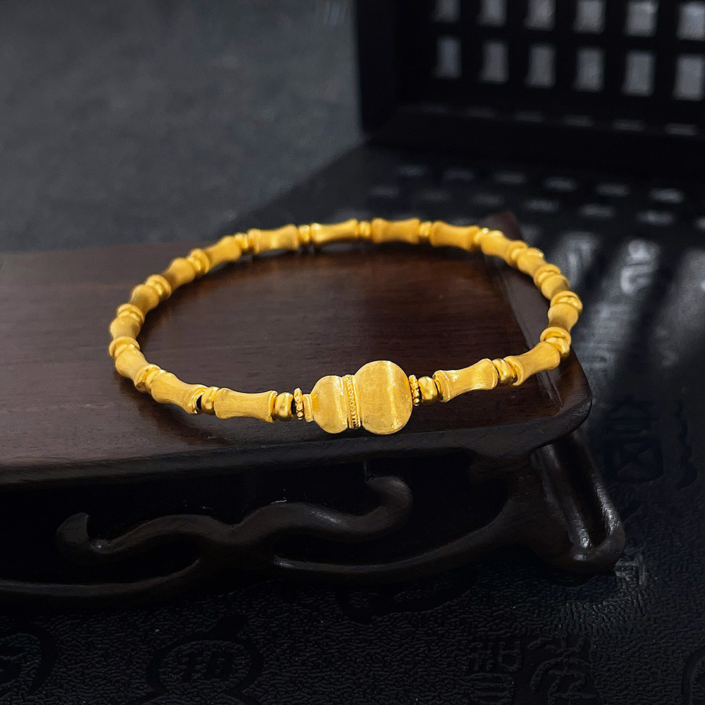 【限时克减150元】足金999 #平安 #招财纳福 #葫芦 古法空心国潮传承福禄平安冰丝金丝绒金葫芦竹节手串弹力绳手串(AUQGFSC00078)预售产品下单后不退款不退货不换货不补差价