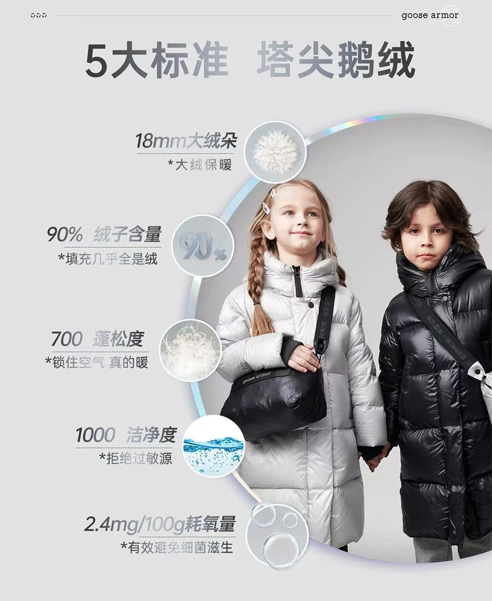 天石鹅铠甲白鹅绒羽绒服男女中大童长款冬户外东北严寒保暖 G614 (2.0版)