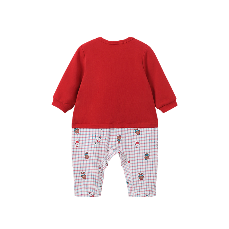 英氏婴儿居家连体衣 男女宝春秋新款大红色爬服YZJAJ31006A