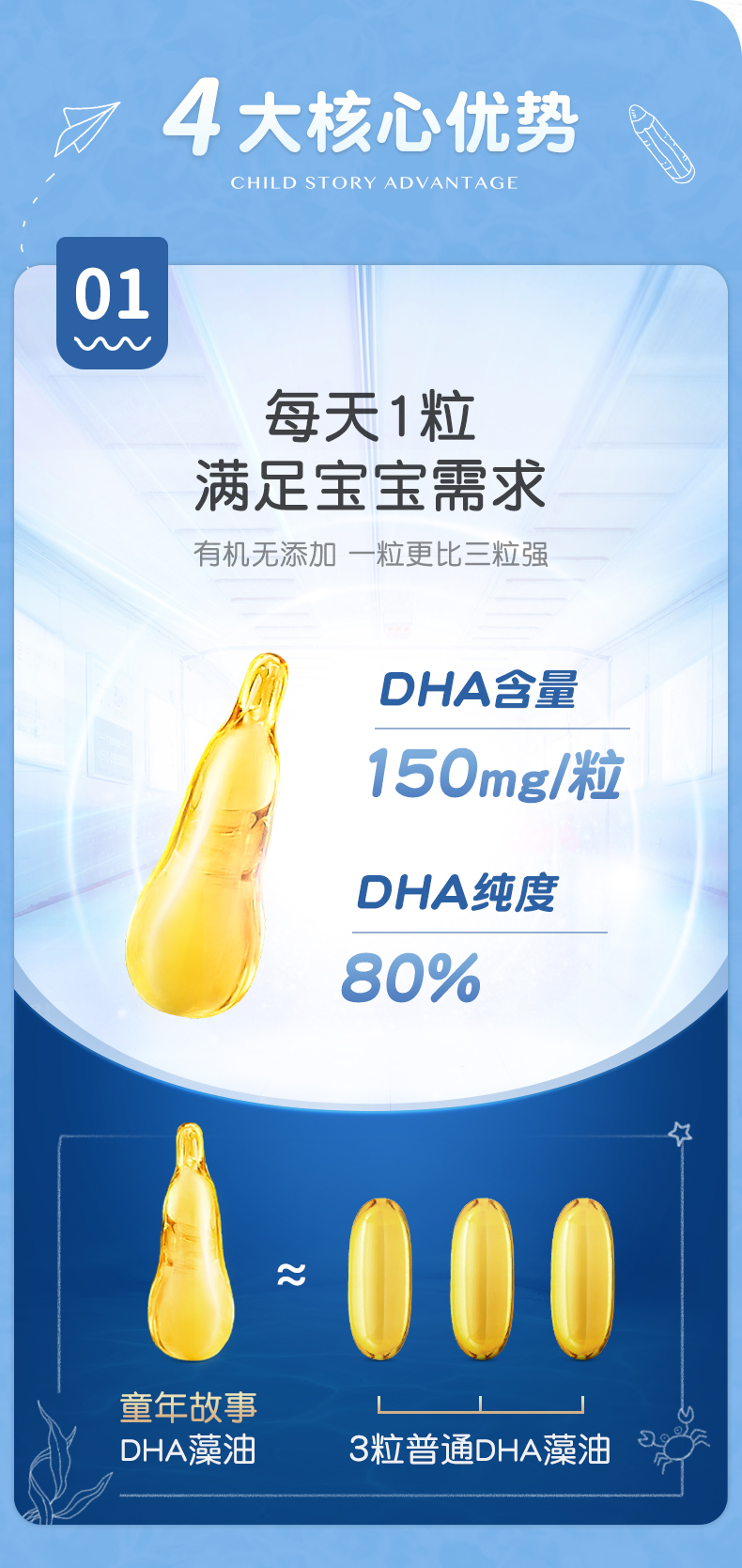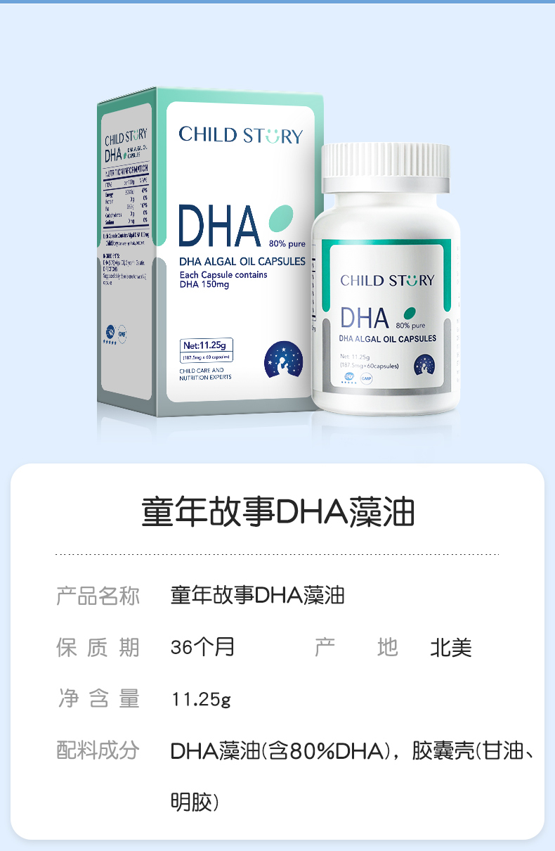 童年故事DHA藻油儿童海藻油dha60粒成人孕妇dha加拿大原装进口dha