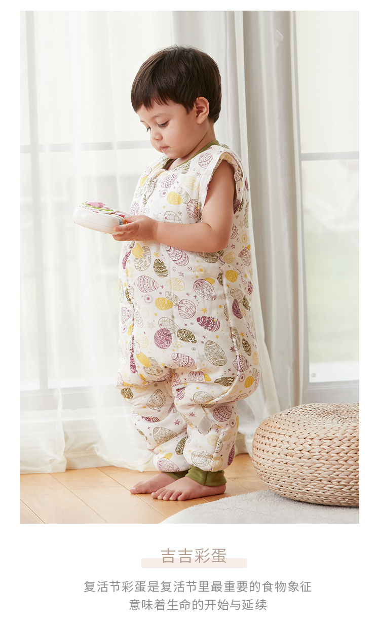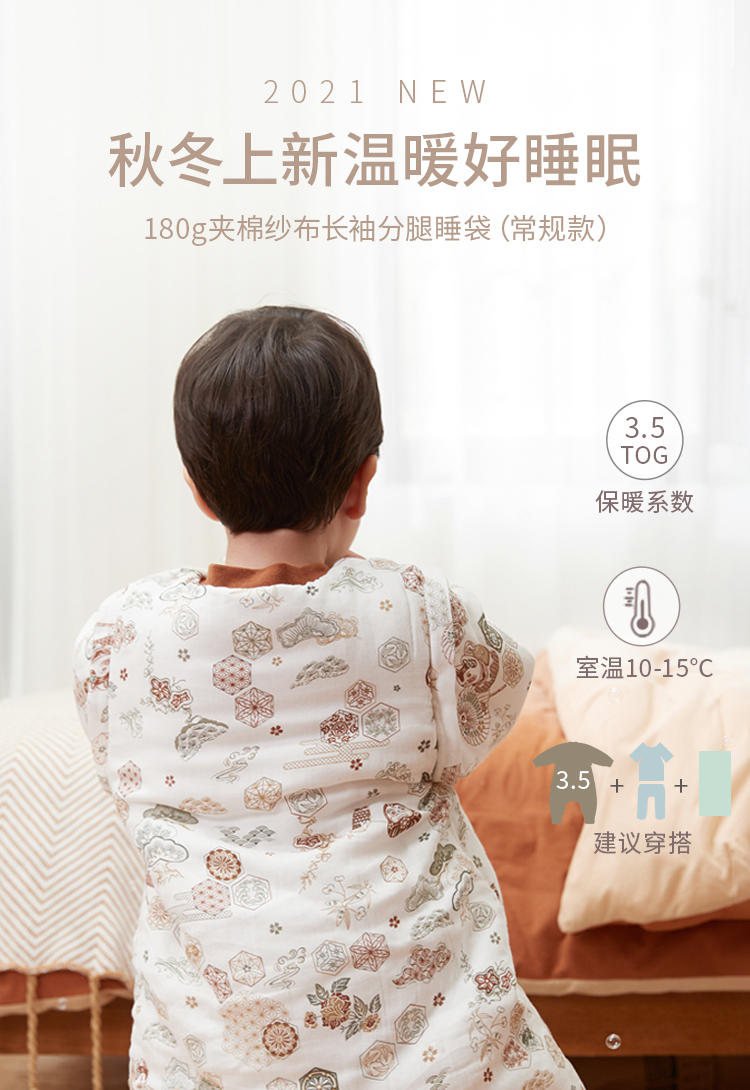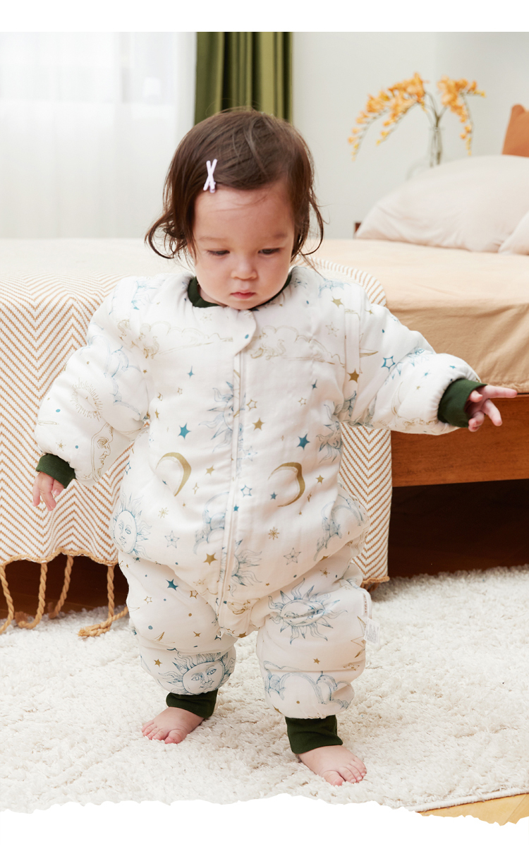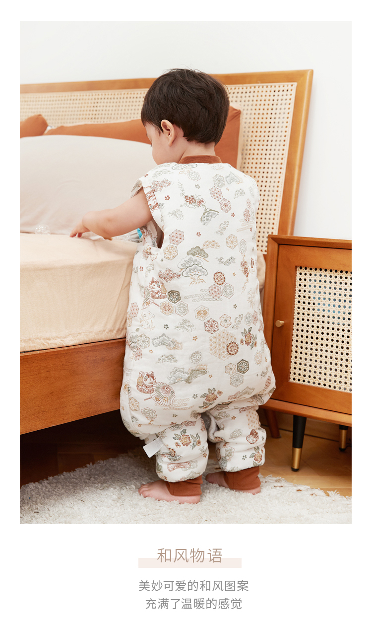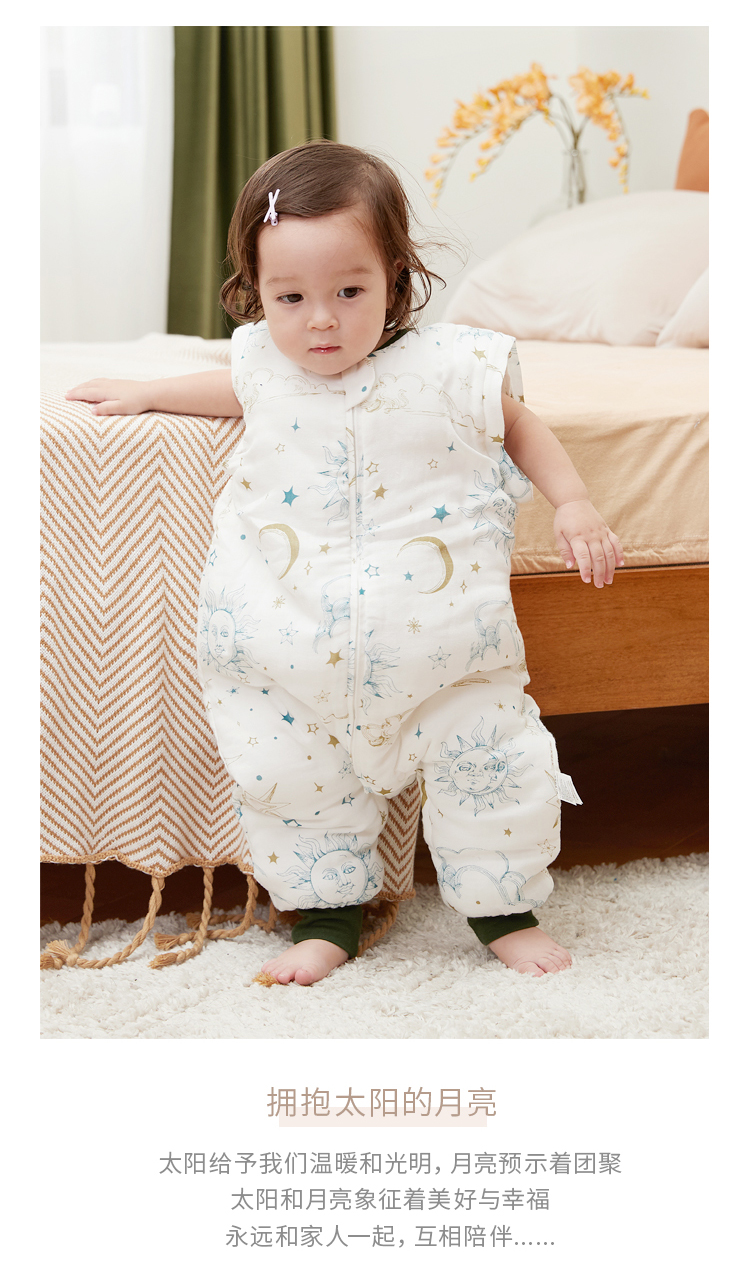 yikyak3.5tog厚夹棉纱布长袖分腿睡袋可拆袖款秋季新款婴儿童新生宝宝防踢被