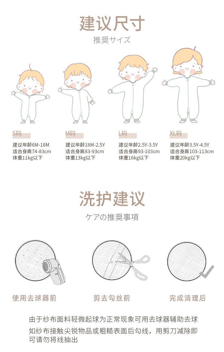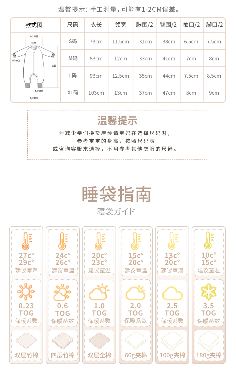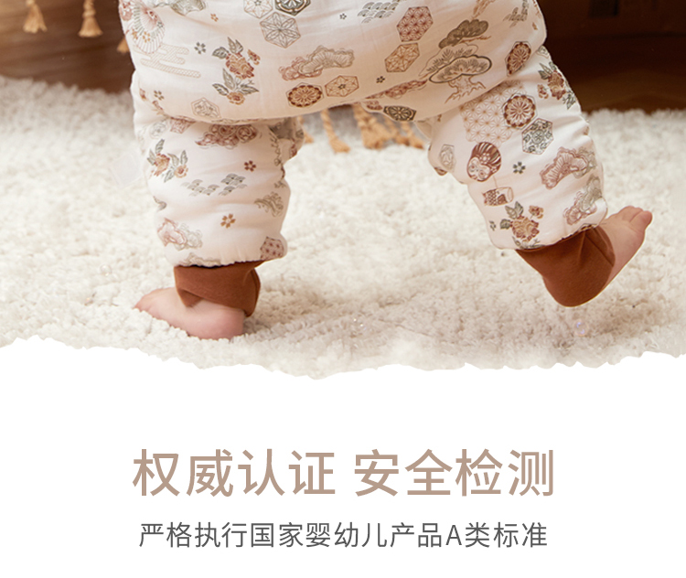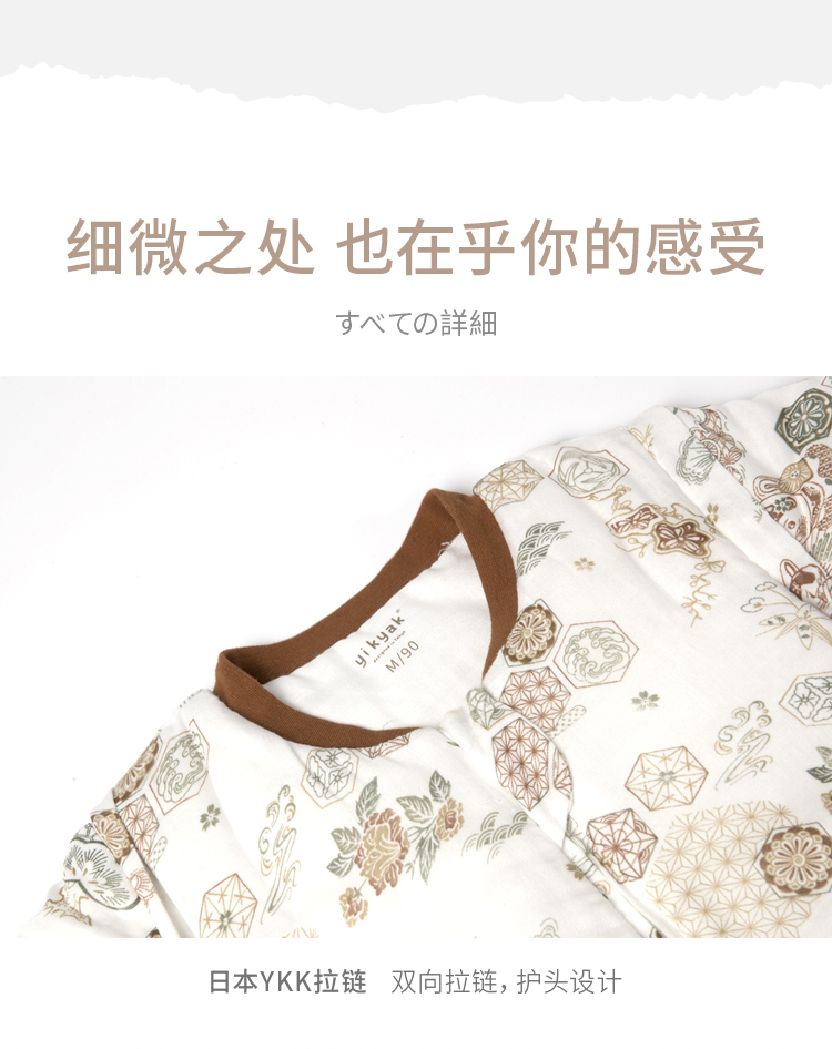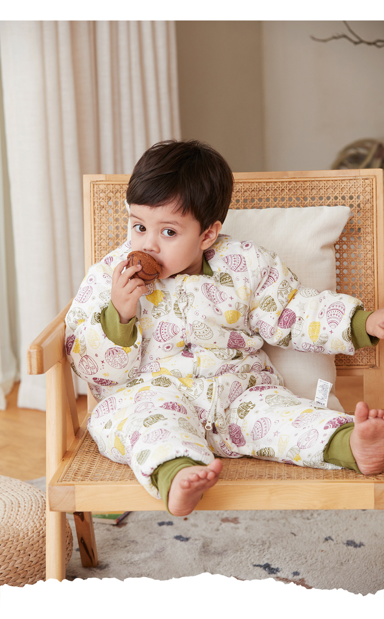 yikyak3.5tog厚夹棉纱布长袖分腿睡袋可拆袖款秋季新款婴儿童新生宝宝防踢被