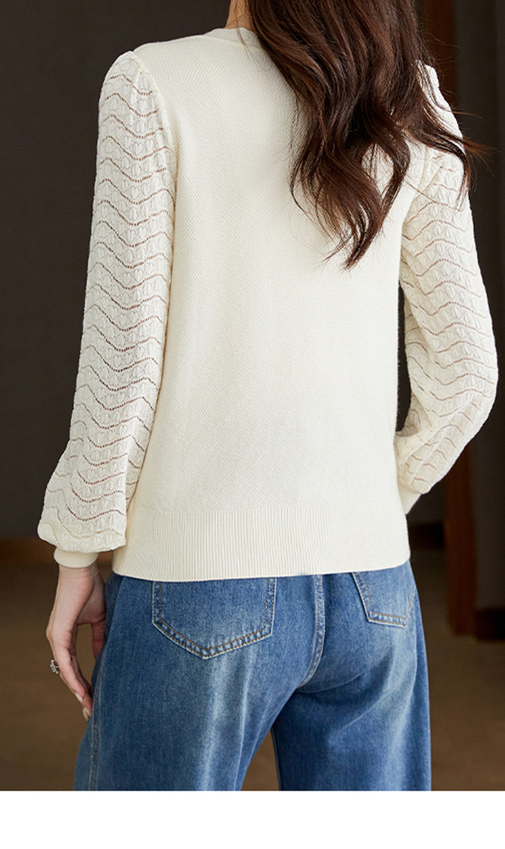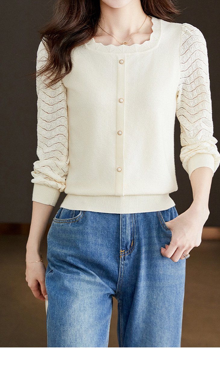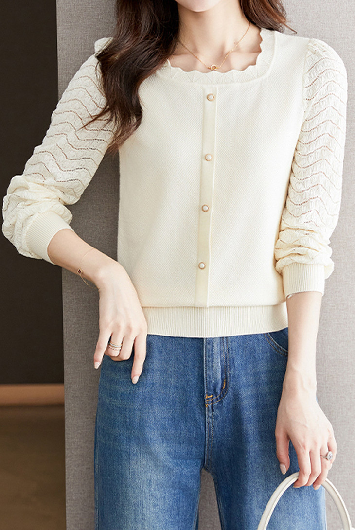 法式镂空蕾丝方领针织衫拼接显瘦套头上衣GYM-SW0310