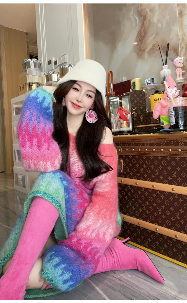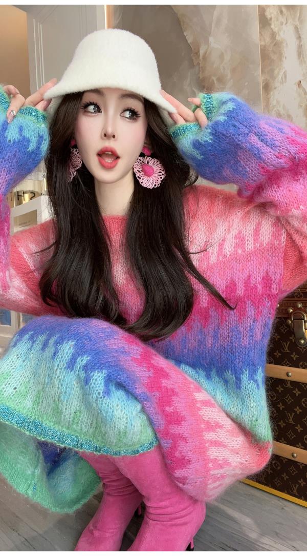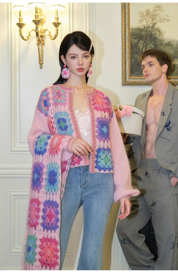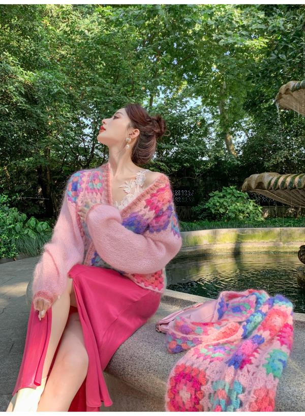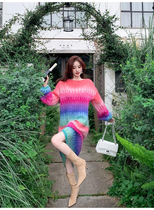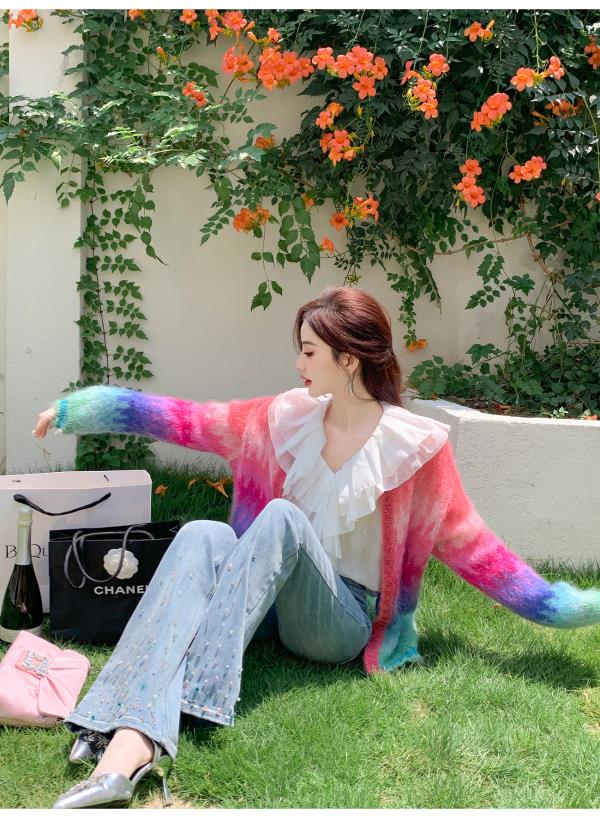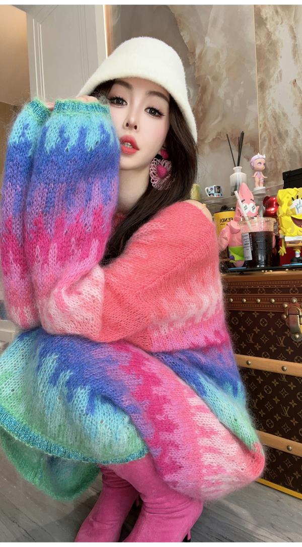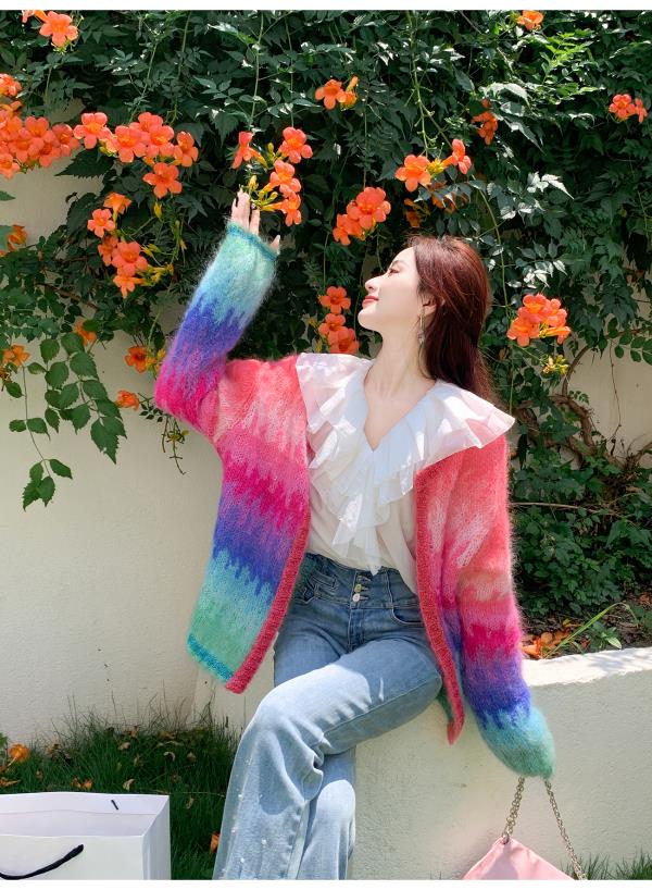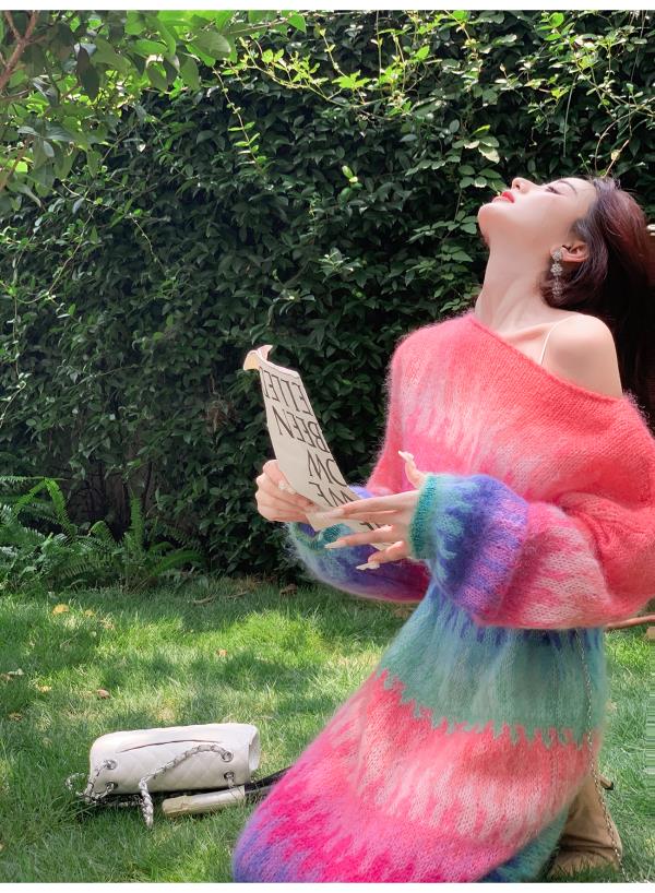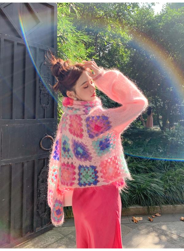 【孤品样衣,不退不换】【心愿彩虹】历时4个半月/3天出2件 马海毛彩虹钩花毛衣