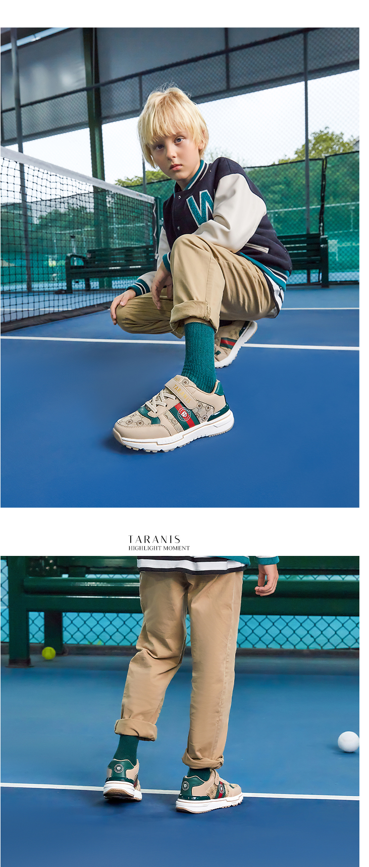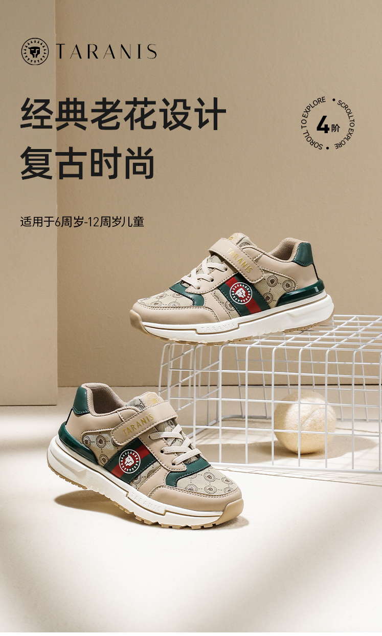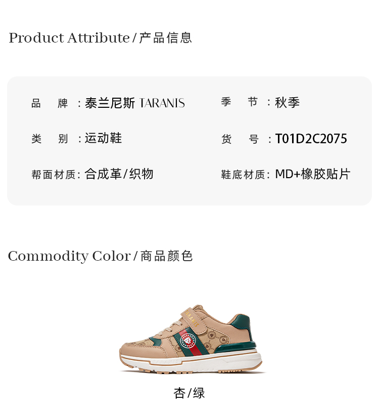 泰兰尼斯秋季中大童经典复古系全超纤轻盈运动鞋T01D2C2075