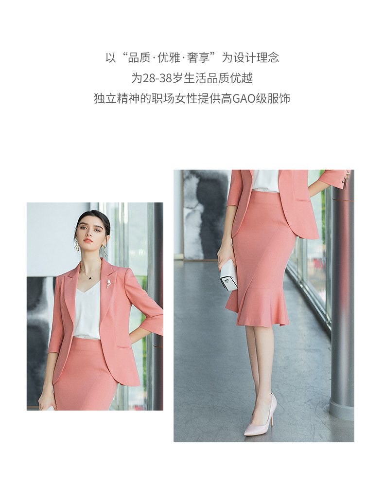 IWY/气质粉色西装套裙女时尚名媛七分袖夏薄款鱼尾裙前台接待职业裙装CS1502