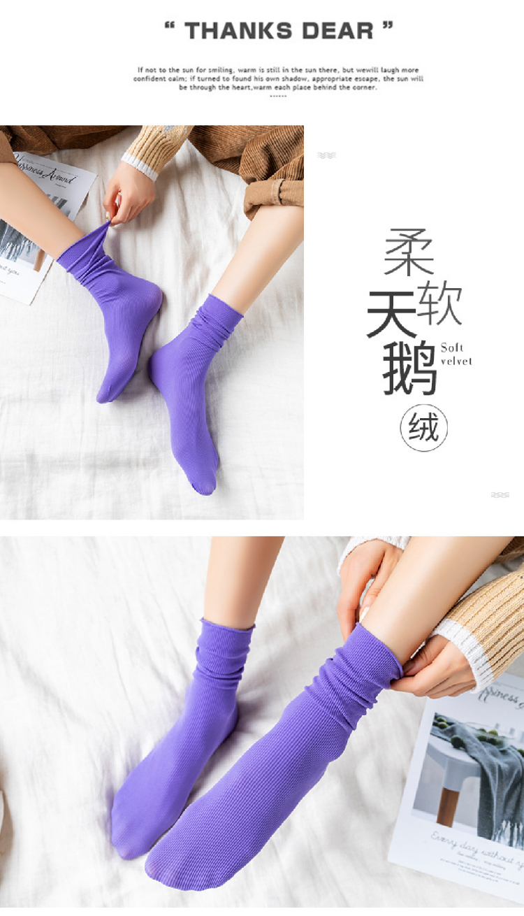 【天鹅绒堆堆袜5双】秋冬季日系ins中筒长袜 纯色潮流百搭冰冰袜