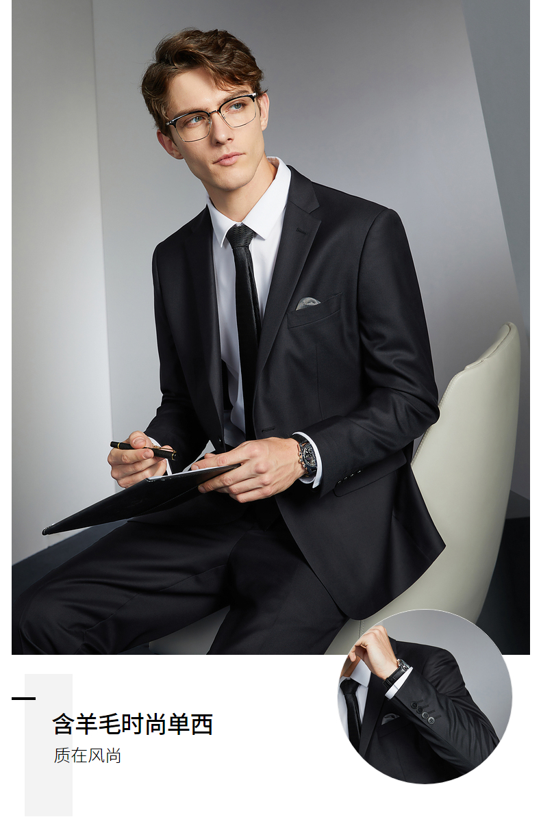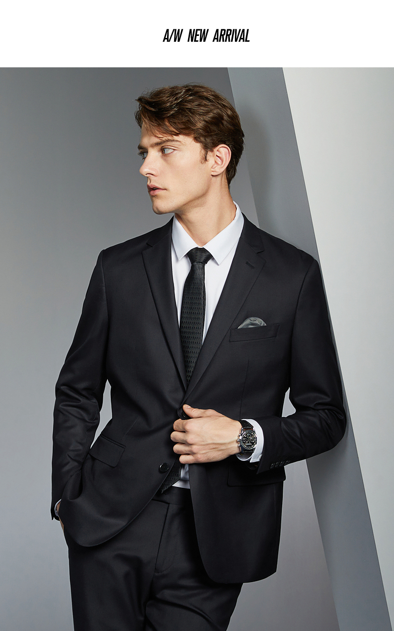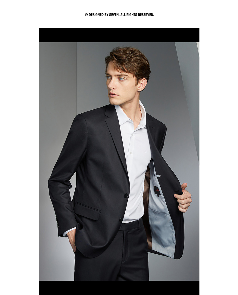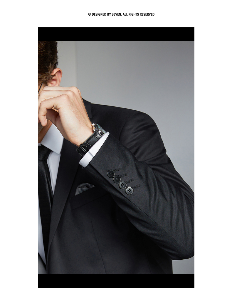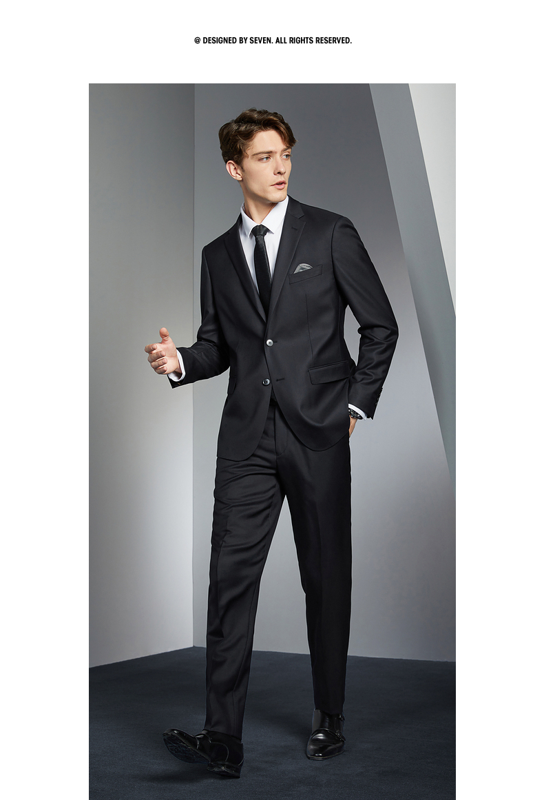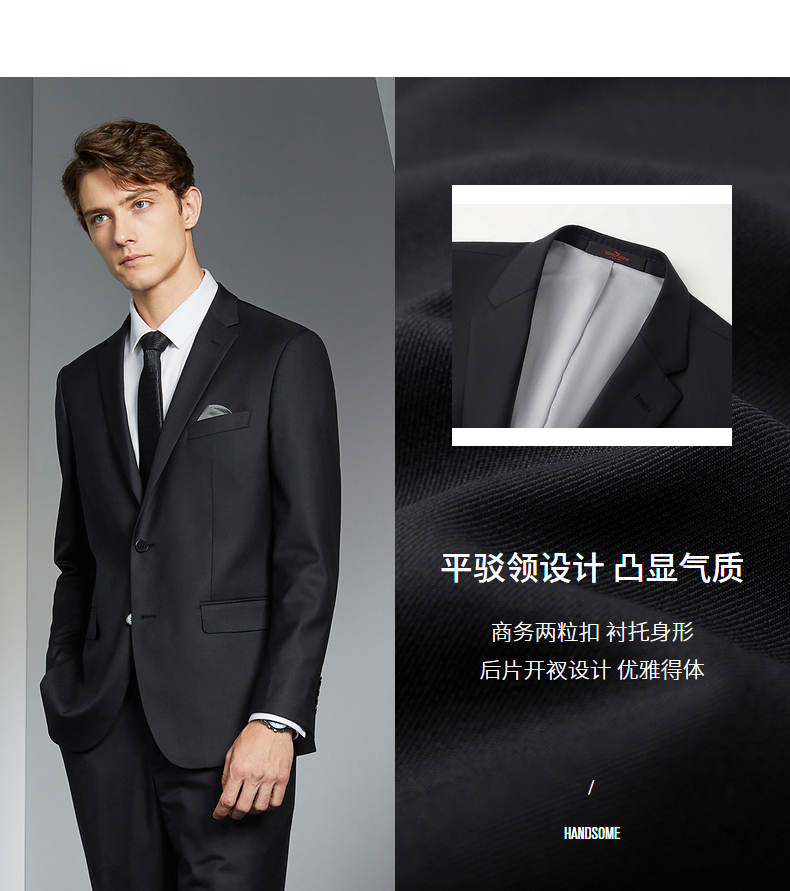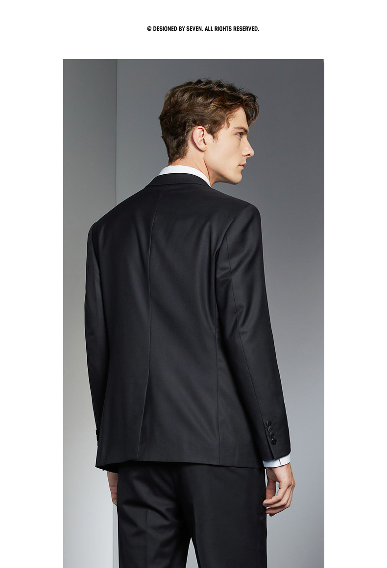 【含羊毛】柒牌男士西服2024春季新款商务正装平驳领黑色西装外套126C70220