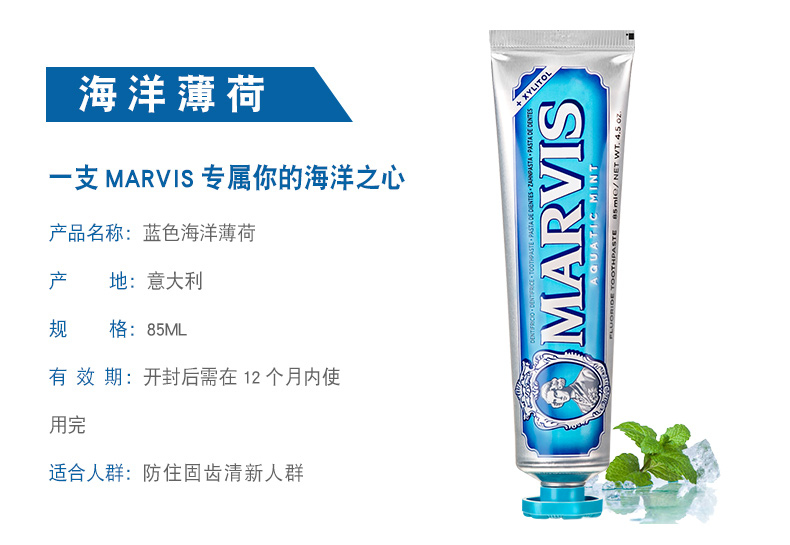 玛尔仕海洋薄荷牙膏85ml/110389 沁凉海洋清新酷爽