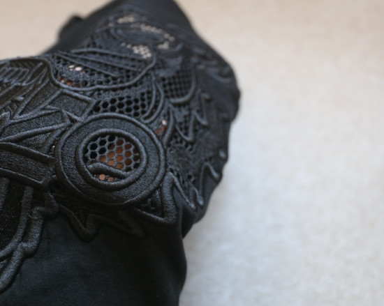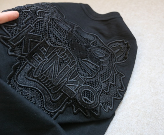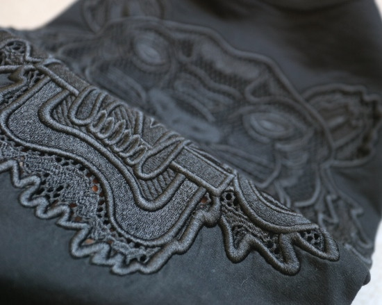 纯黑色 霸气的镂空虎头 在网眼布上用的万针刺绣 勾勒线 都是很有力度的