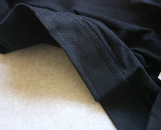 领口袖口底边 是弹力螺纹的 插肩无肩线 袖不是很长 包过肩头一点的那种