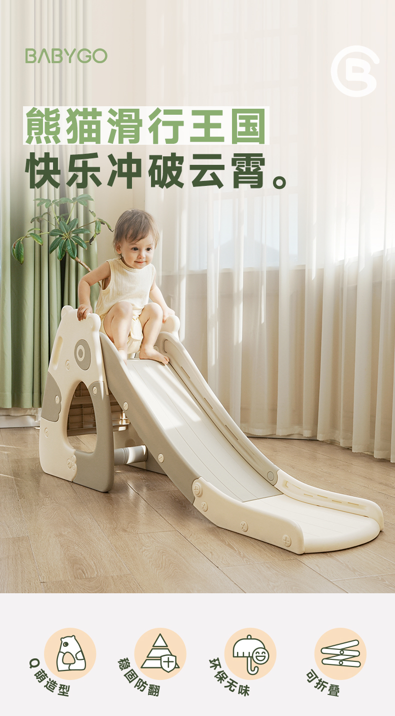 BABYGO儿童滑梯室内小型滑滑梯熊猫滑梯儿童乐园玩具