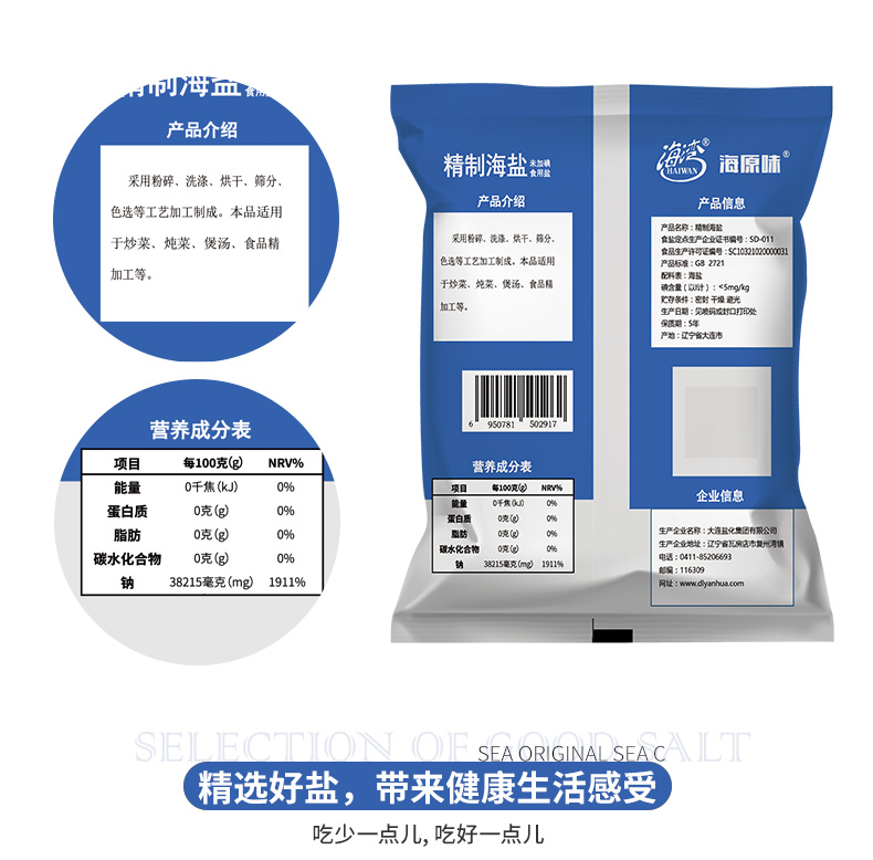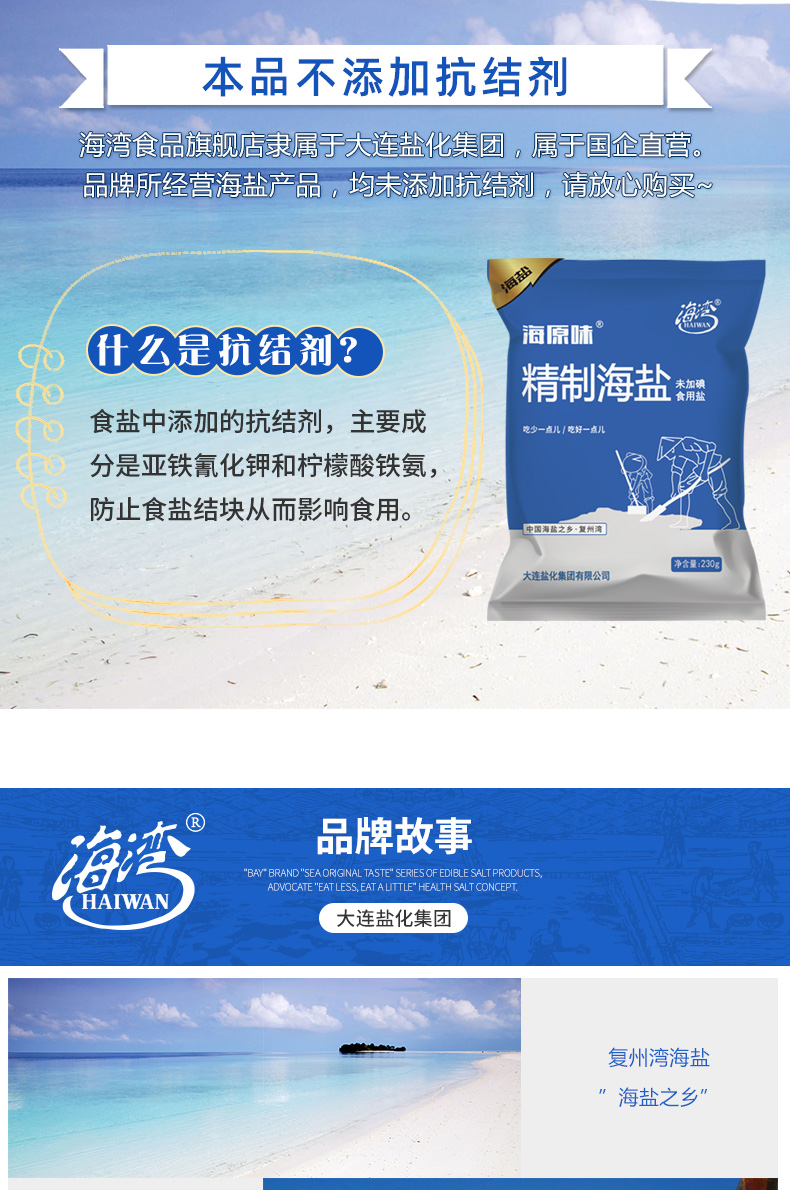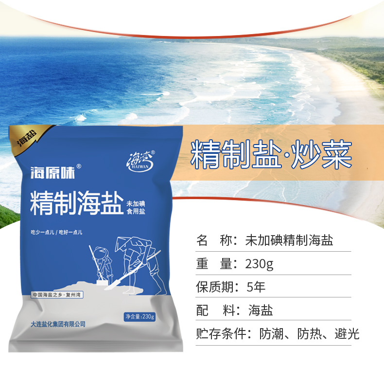 [盐化集团]海湾无碘精制海盐食用盐天然海盐家用不加碘食盐巴精制无典盐(230g*10)