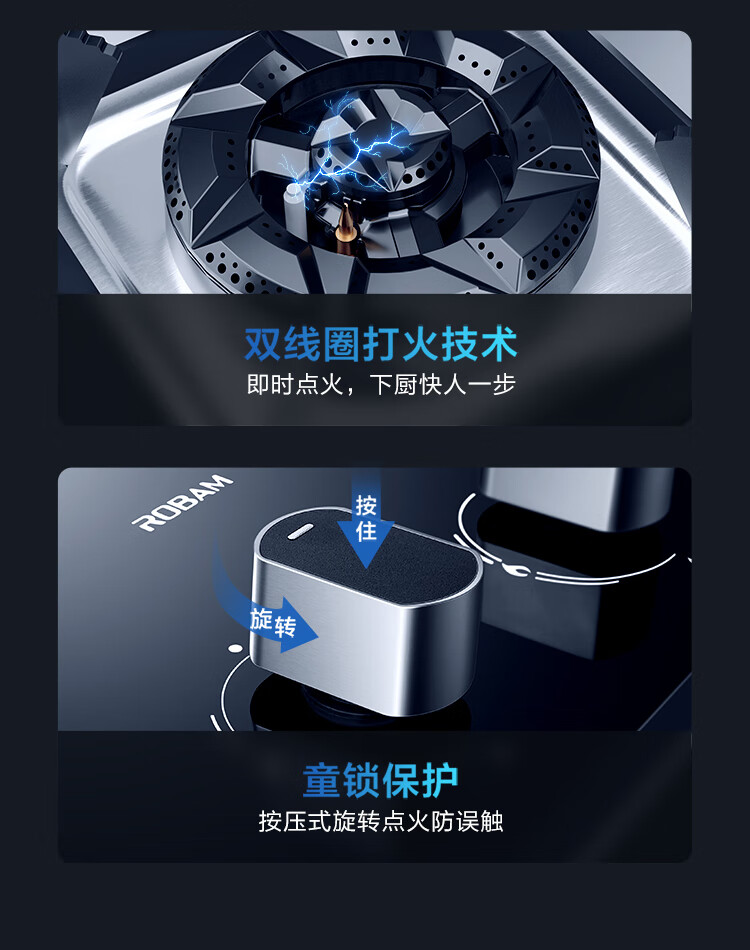 老板(Robam)JZT-57B1K家用防爆钢化玻璃面板 易打理嵌入式燃气灶 猛火灶5.0kW灶具(天然气)开孔700*400*R10