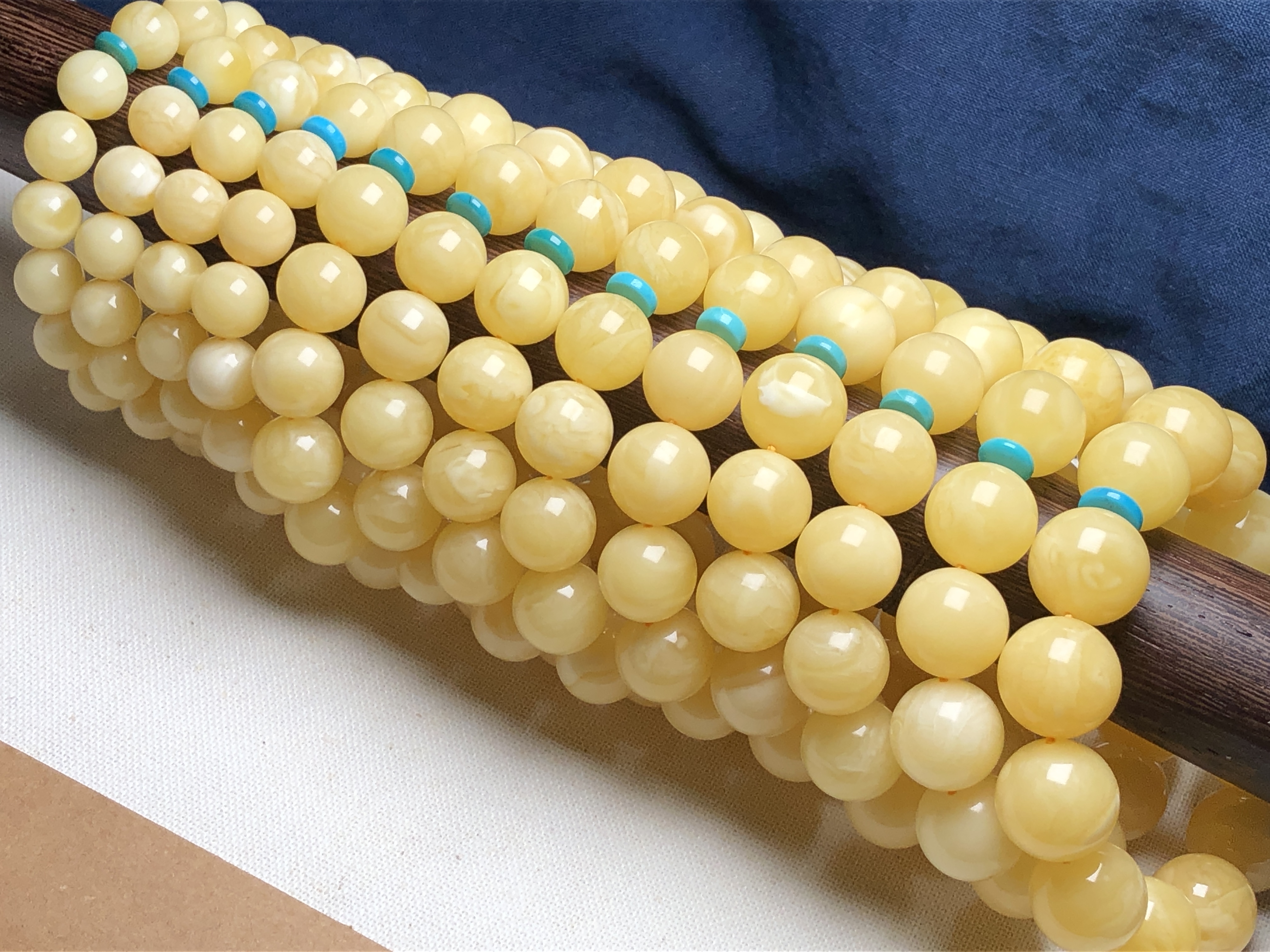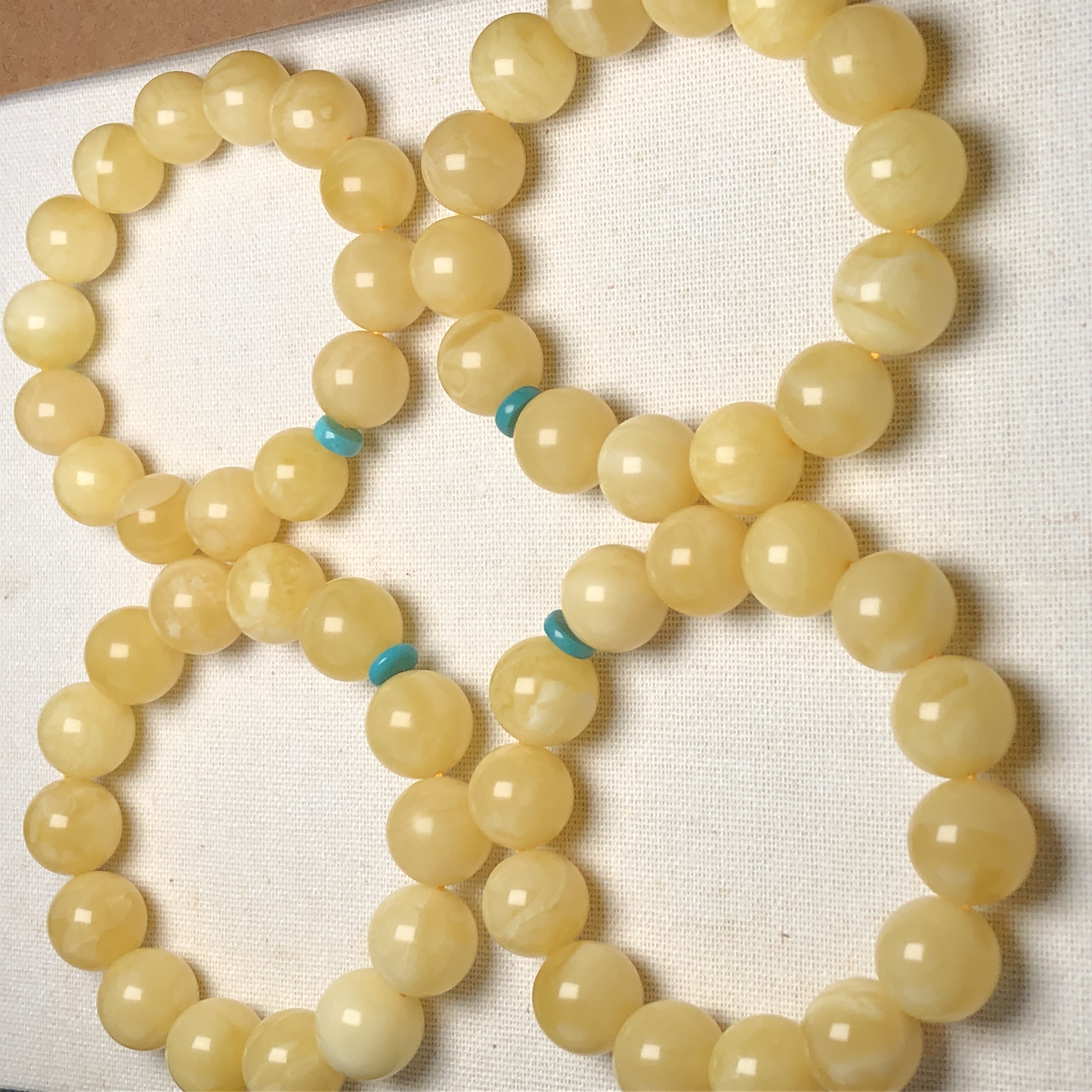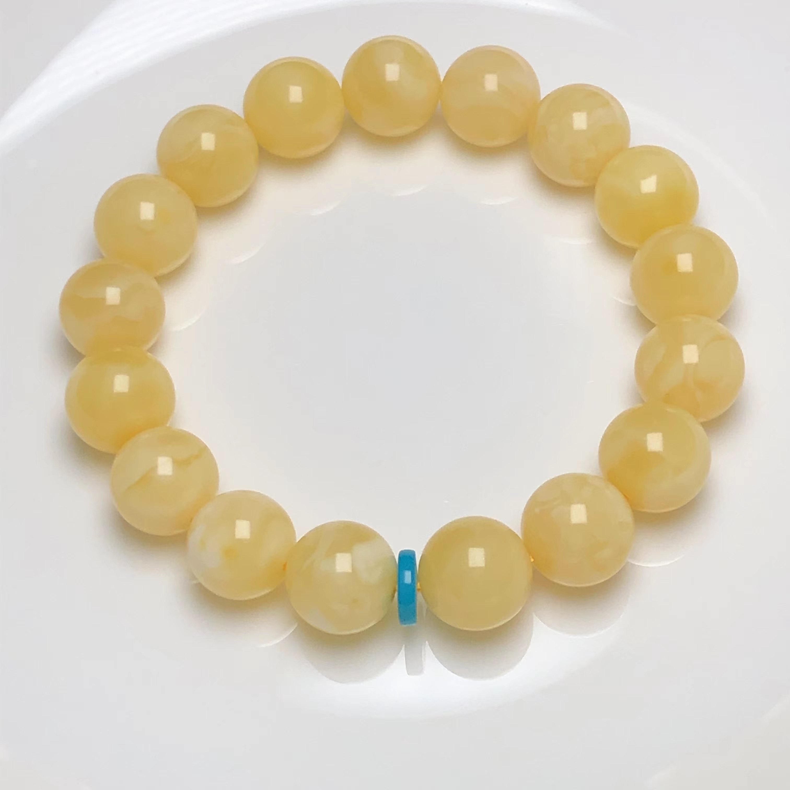 天然原矿俄料白花琥珀(蜜蜡)松石隔片手链 饰品美物