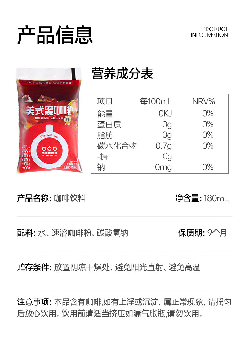 隅田川咖啡饮料美式黑咖啡720ml