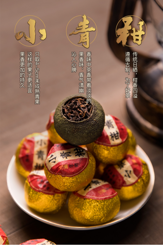 小青柑,顾名思义, 是由新鲜的柑皮与普洱茶叶结合而成。 这款茶的名字虽简单,但它的韵味却足以让人陶醉。