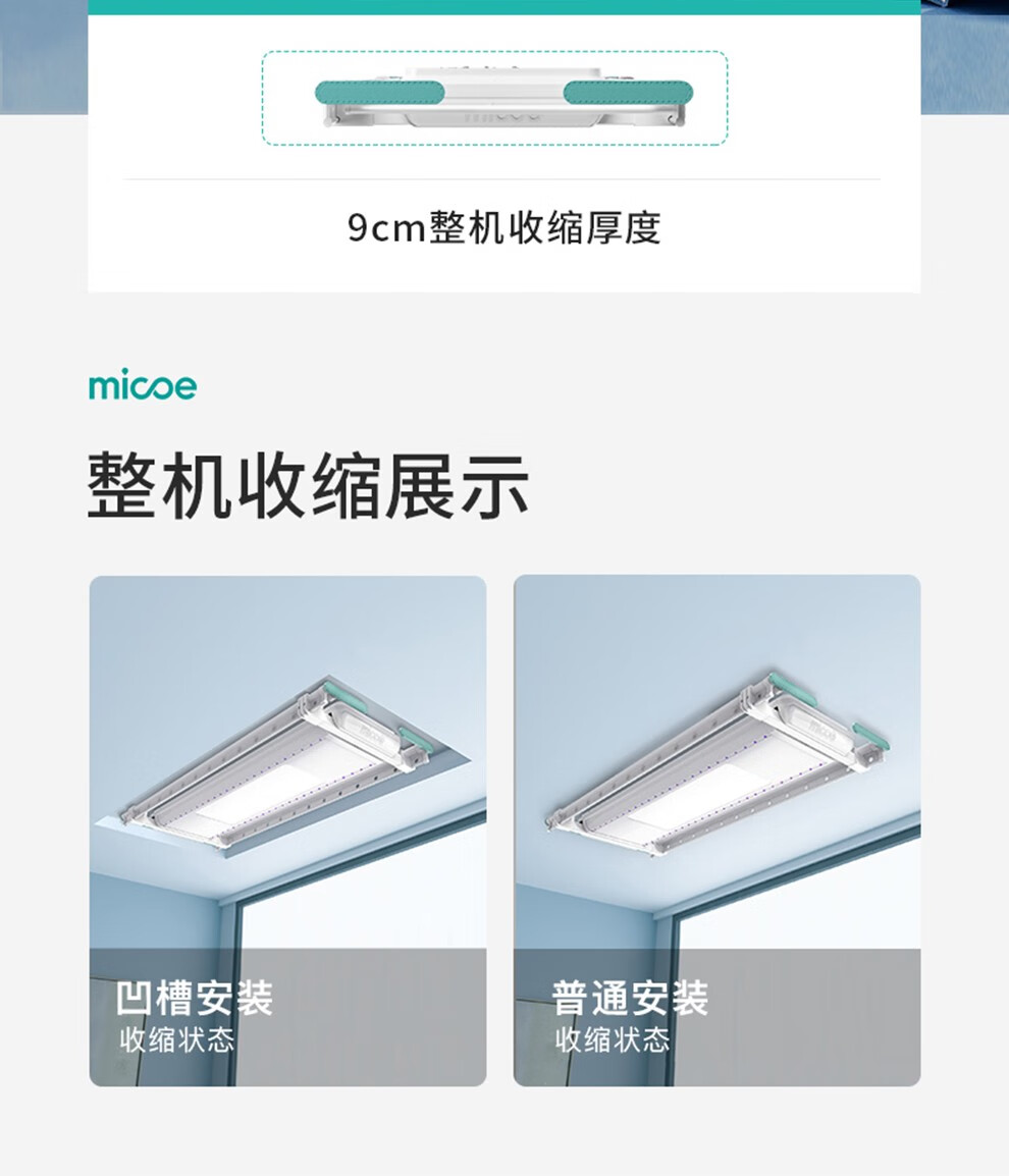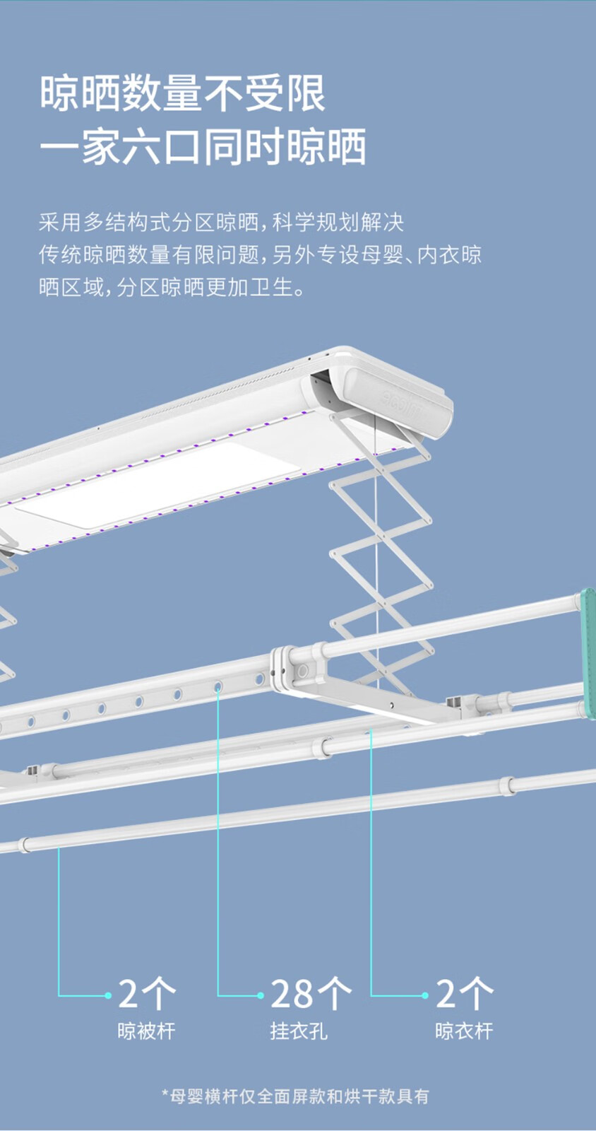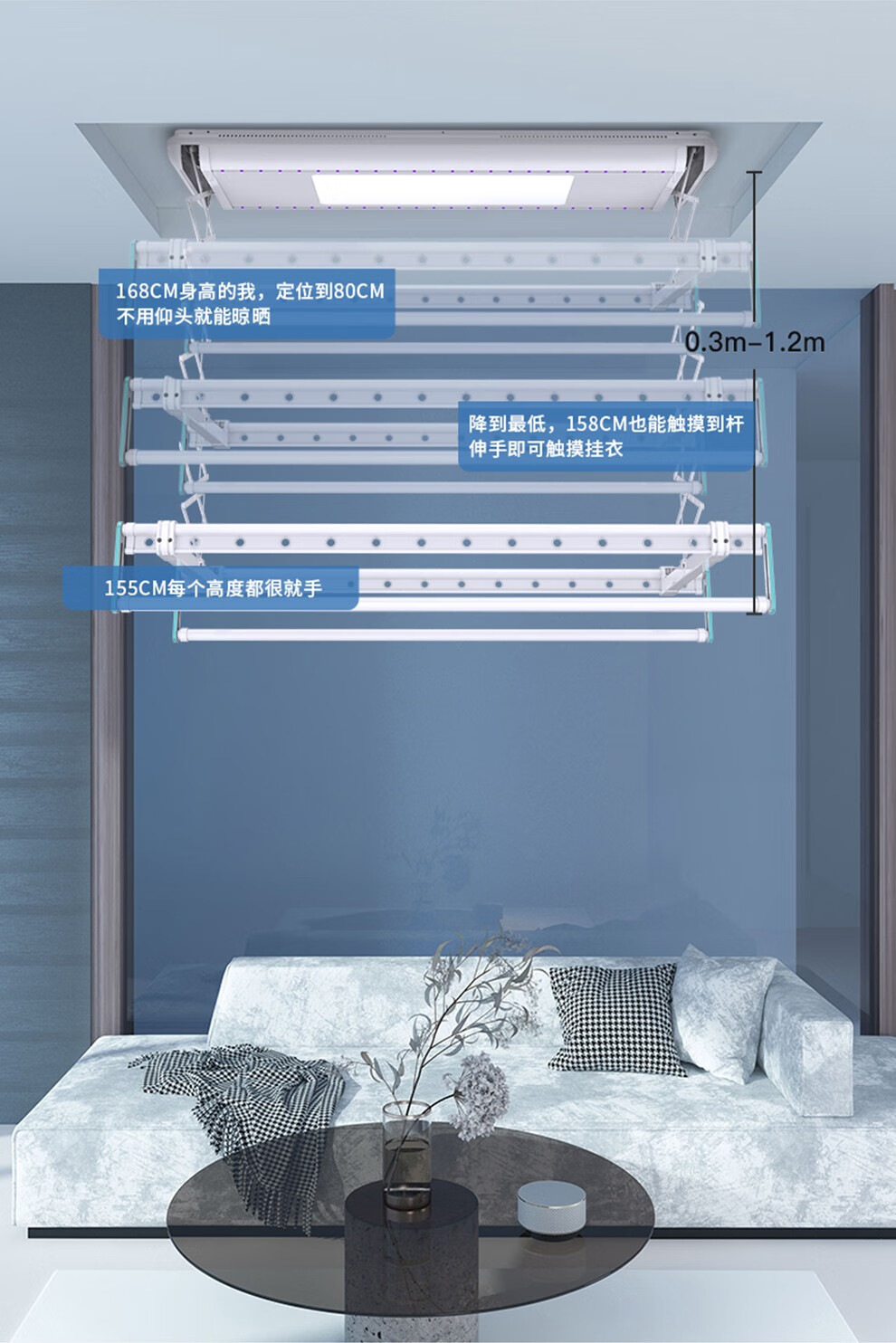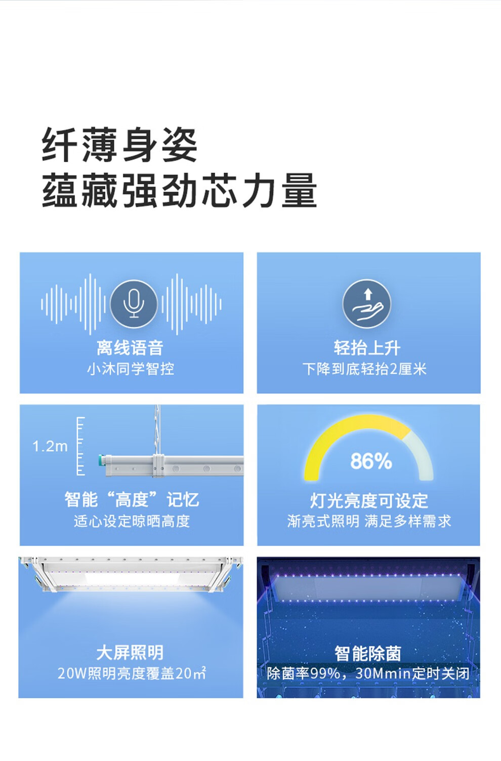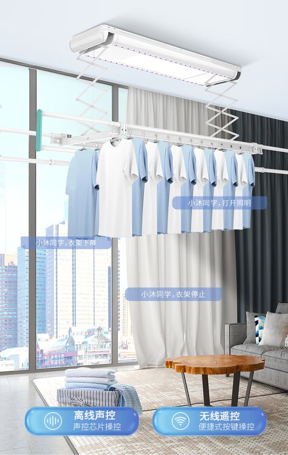 四季沐歌嵌入设计纤薄电动智能晾衣架语音声控照明除菌晾衣架 晾衣杆 [云端 1301X]离线声控+照明除菌