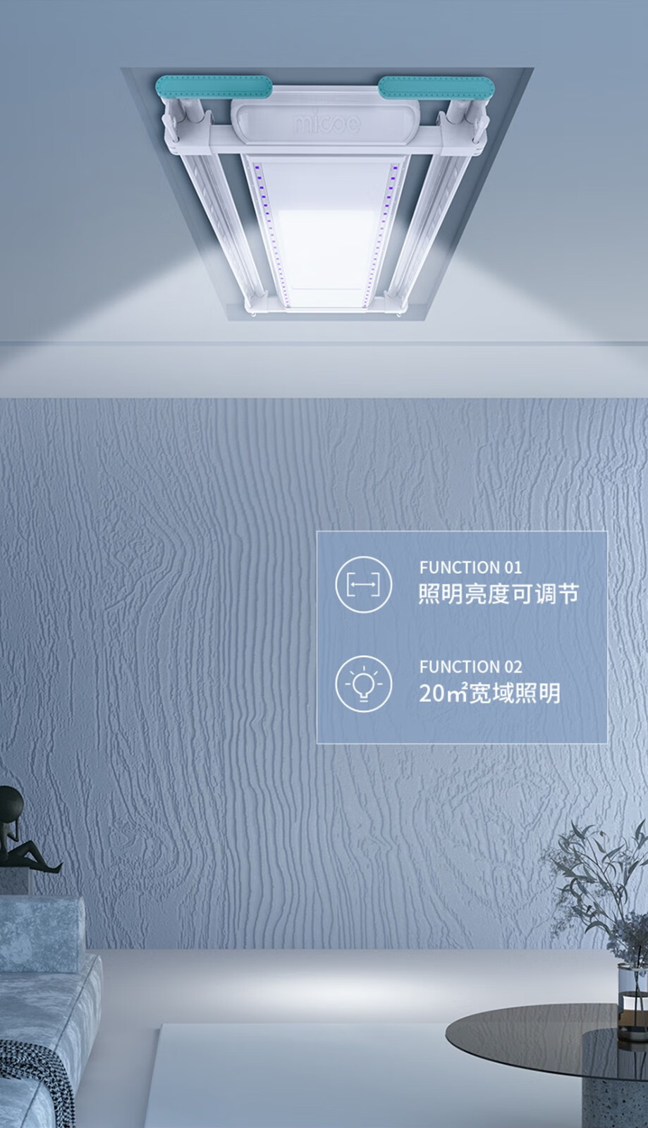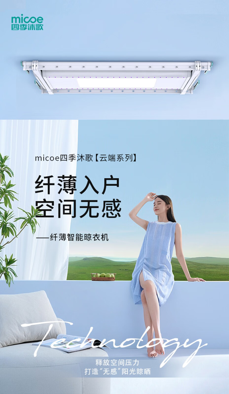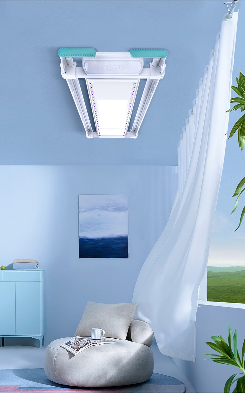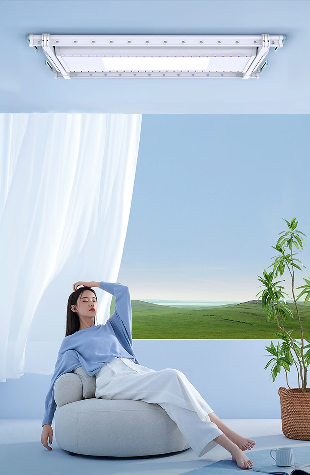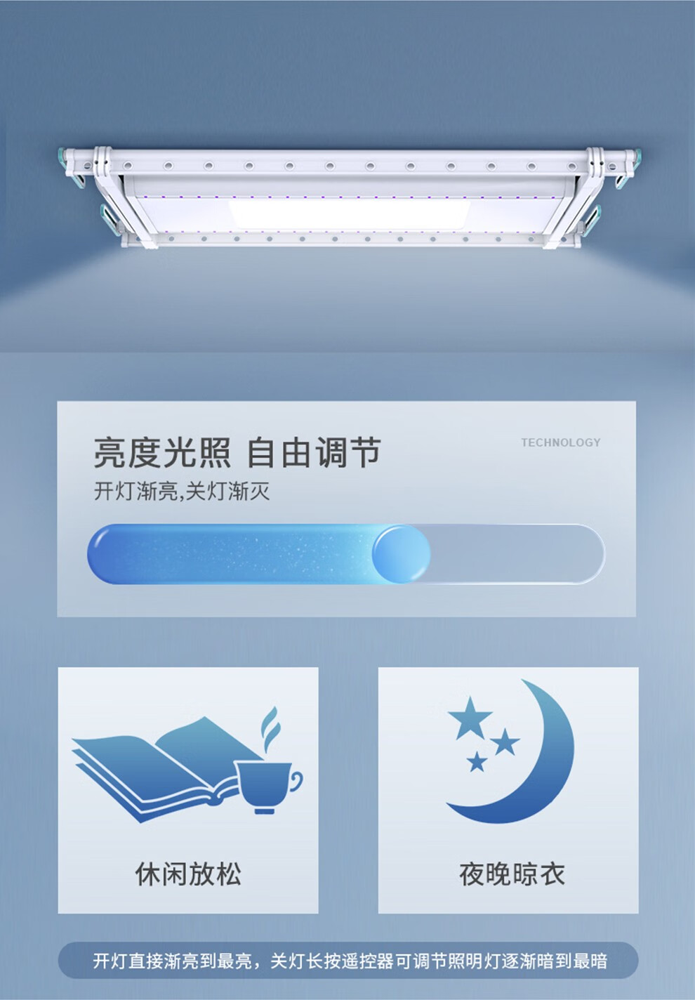 四季沐歌嵌入设计纤薄电动智能晾衣架语音声控照明除菌晾衣架 晾衣杆 [云端 1301X]离线声控+照明除菌