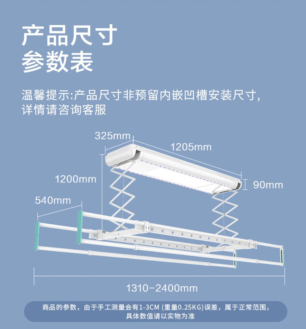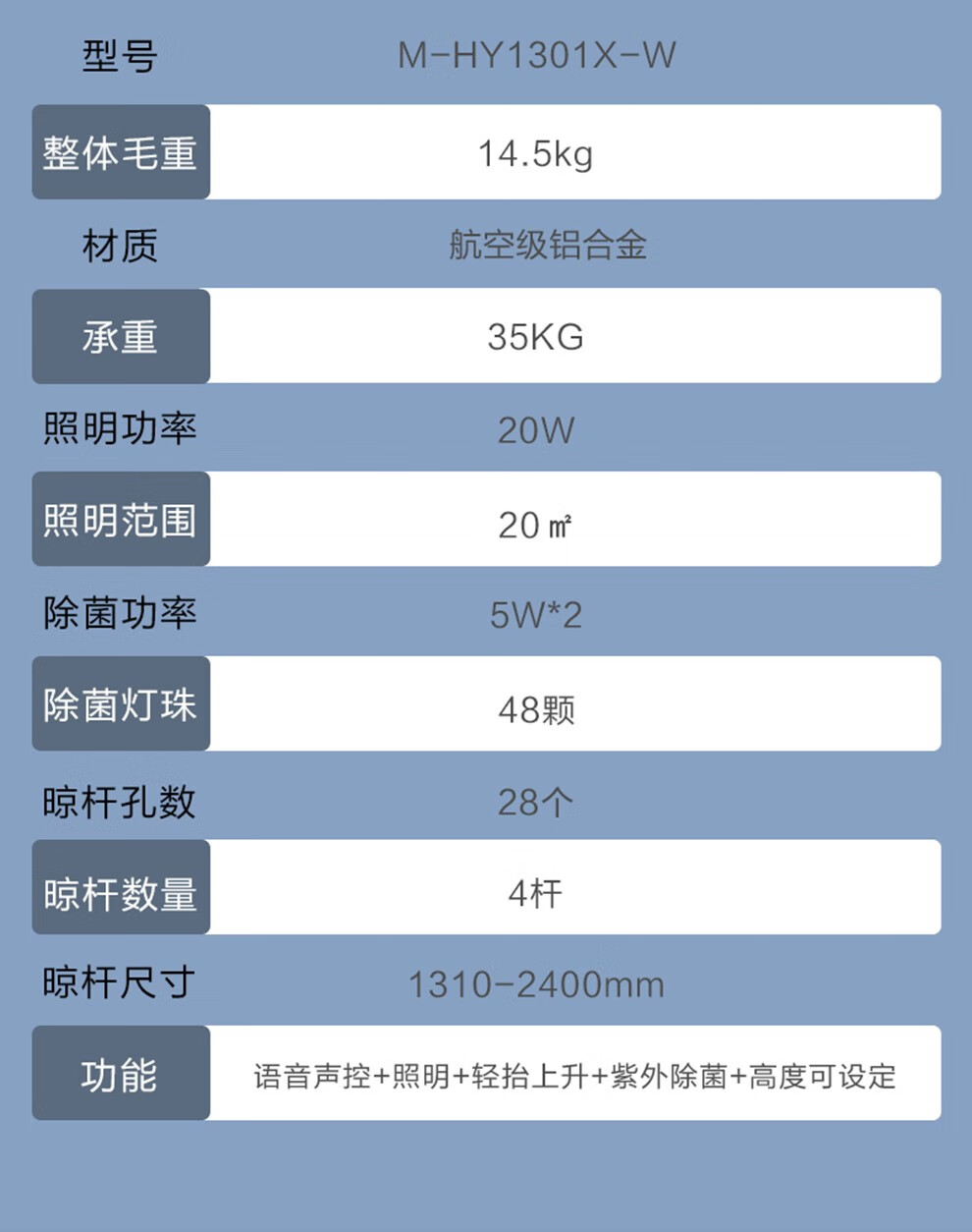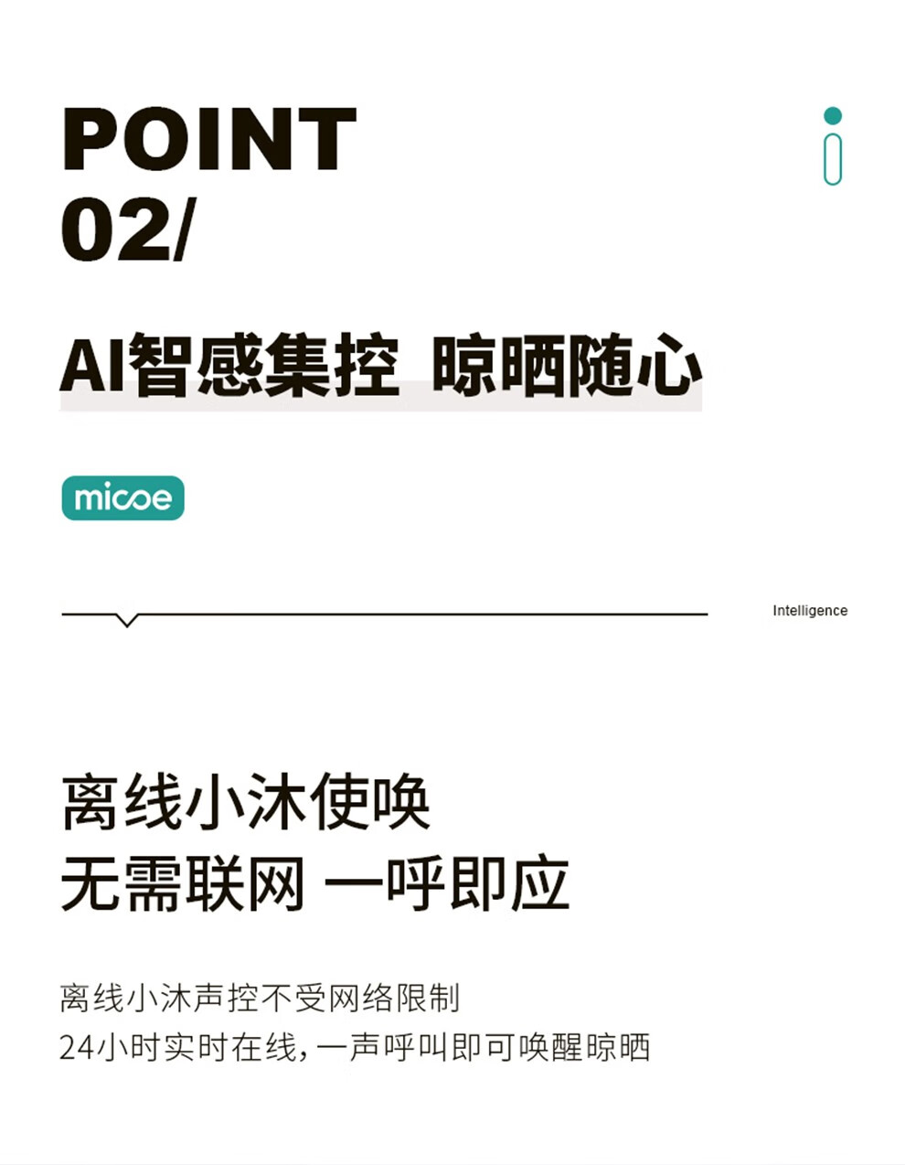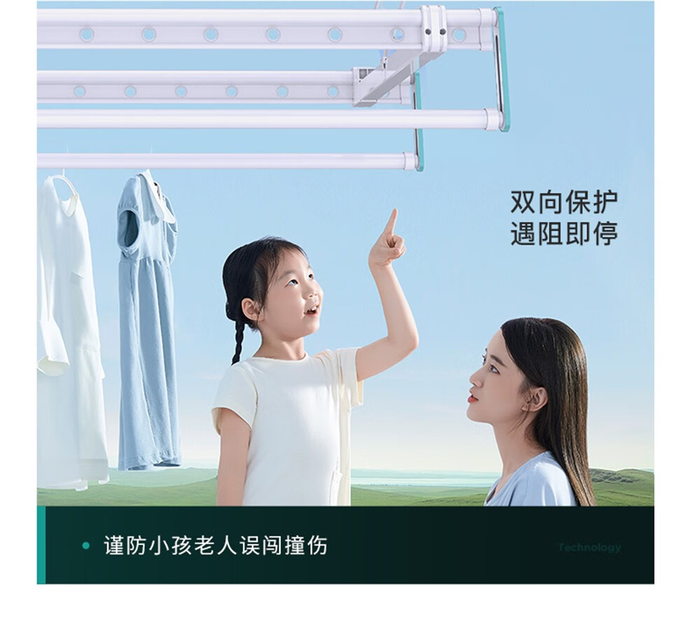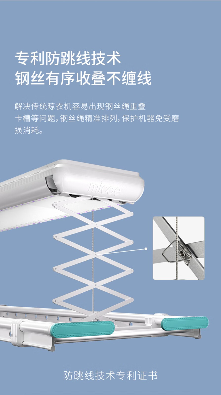 四季沐歌嵌入设计纤薄电动智能晾衣架语音声控照明除菌晾衣架 晾衣杆 [云端 1301X]离线声控+照明除菌