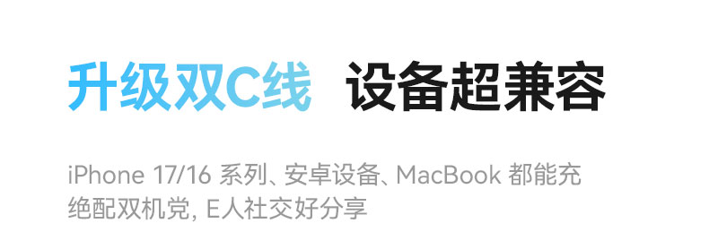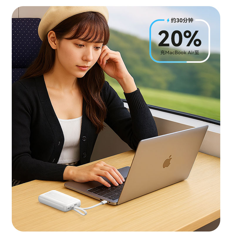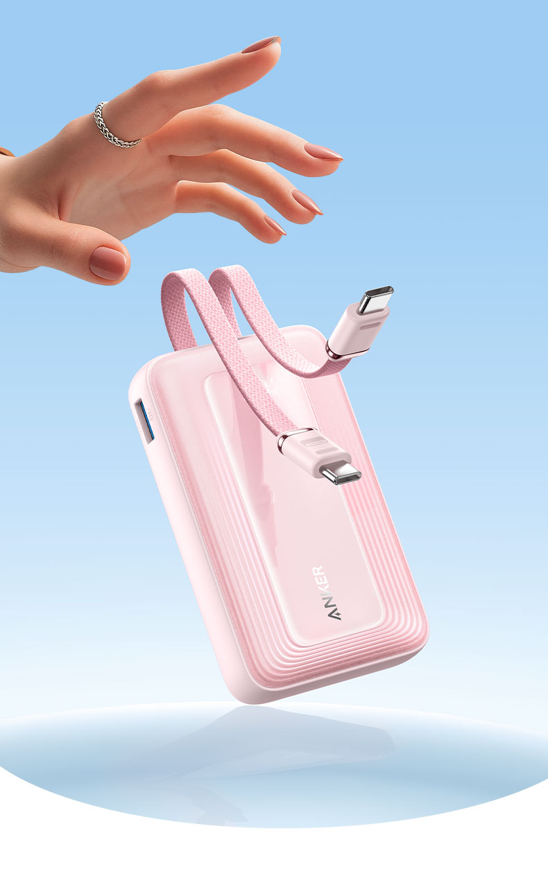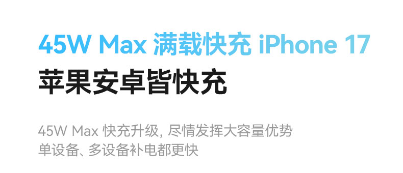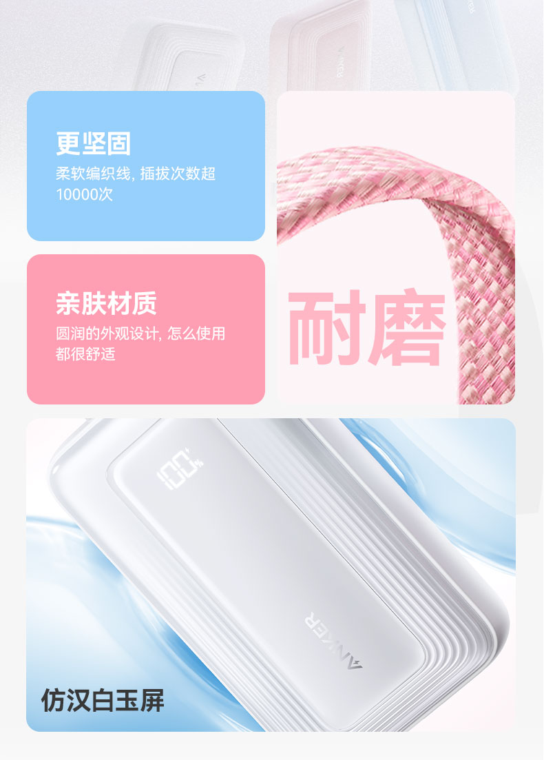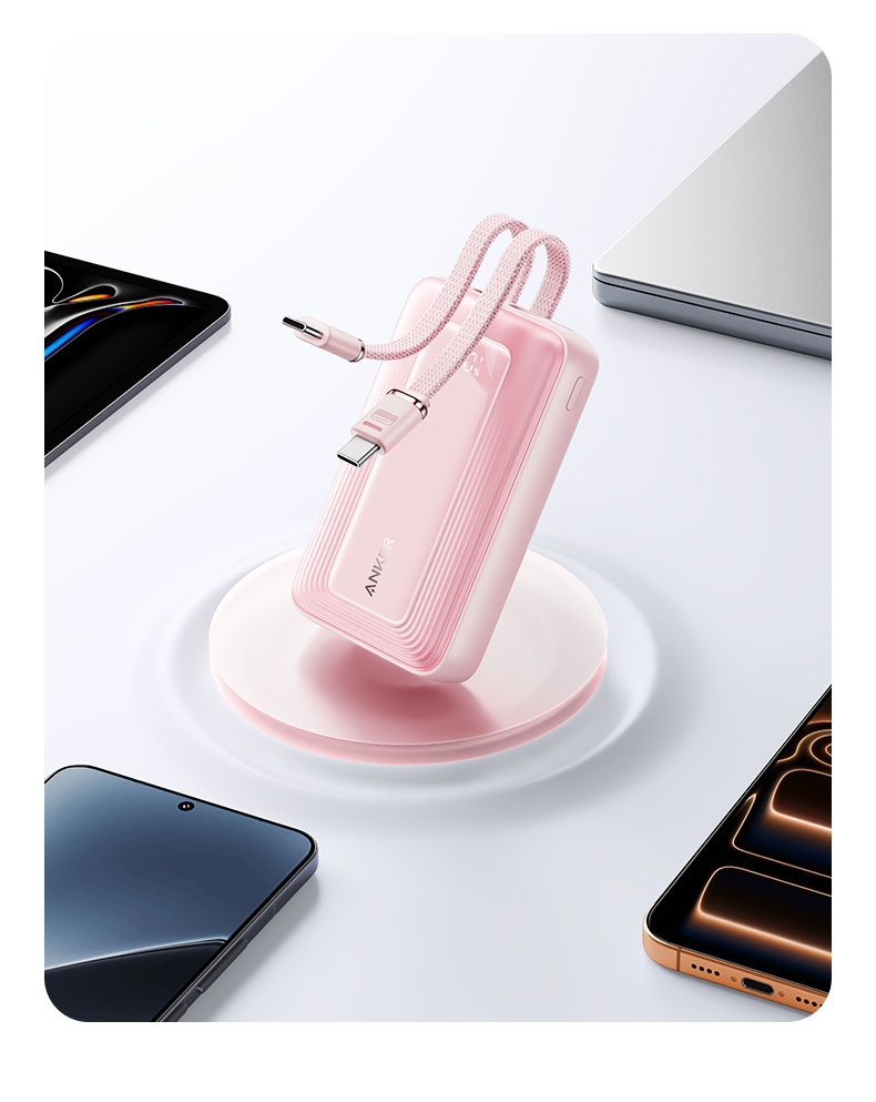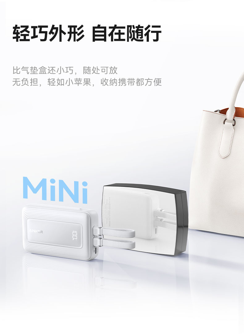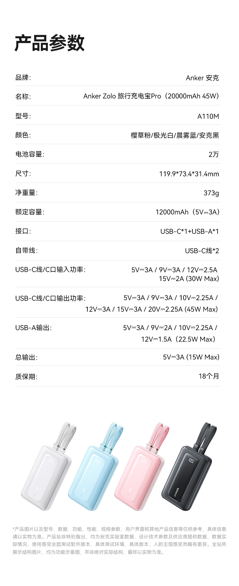 【新品】Anker安克 自带双C线20000mAh移动电源 45W快充可上飞机适配苹果17/小米/华为手机 A110M