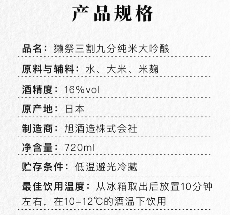 【锦高乐金】獭祭 纯米大吟酿清酒 三割九分 720ml