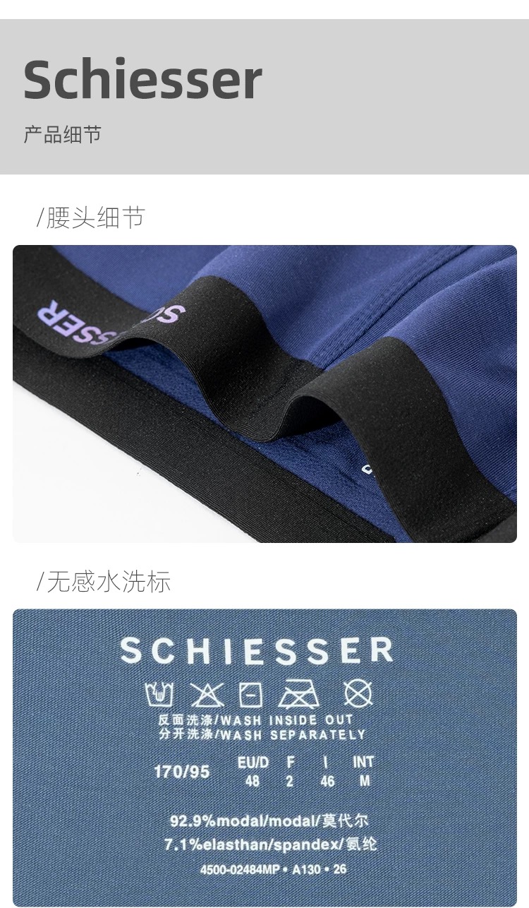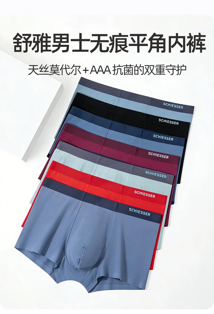 【超柔莫代尔】SCHIESSER德国舒雅男士超柔莫代尔无痕平角底裤内裤单条装35/24881T