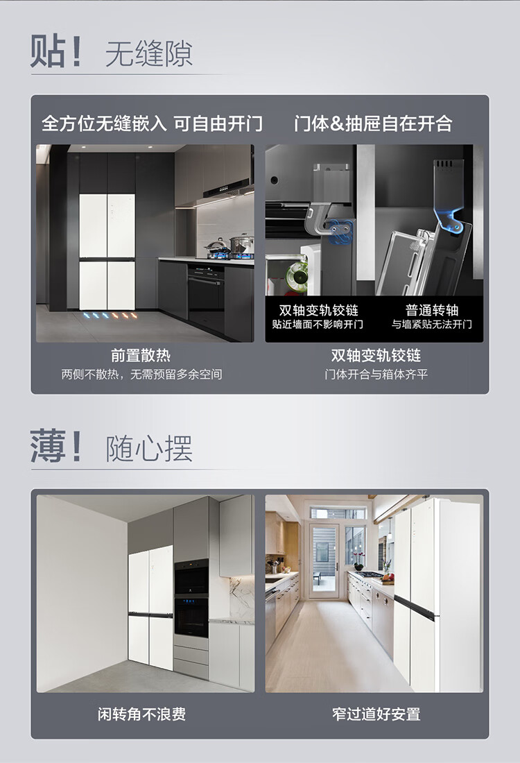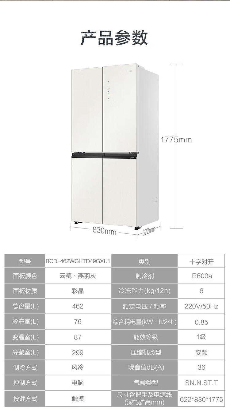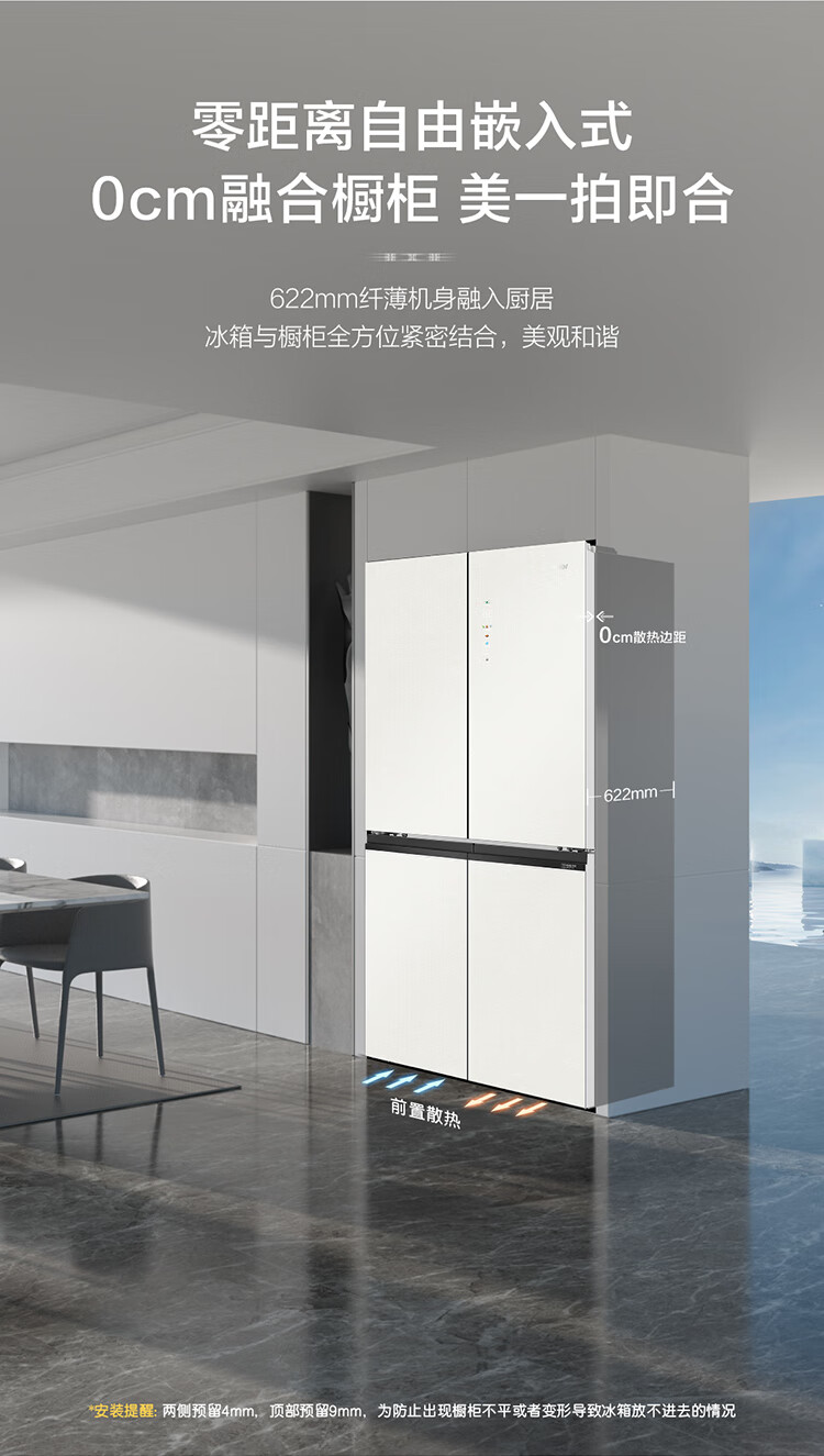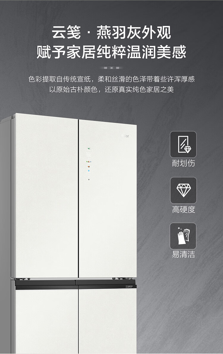 海尔(Haier)云笺462升零距离嵌入式十字双开门双变频风冷无霜一级能效家用超薄电冰箱-462WGHTD49GXU1 燕羽灰