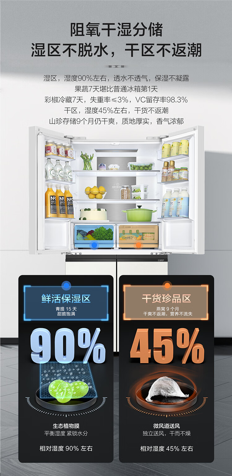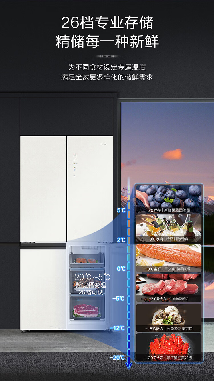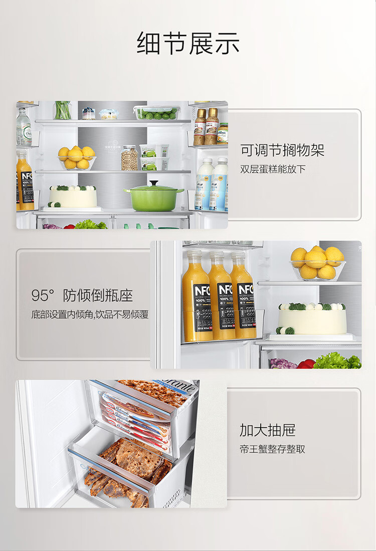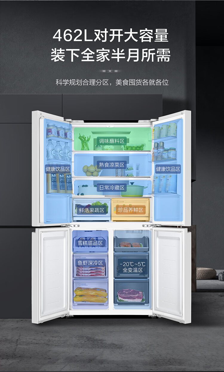 海尔(Haier)云笺462升零距离嵌入式十字双开门双变频风冷无霜一级能效家用超薄电冰箱-462WGHTD49GXU1 燕羽灰