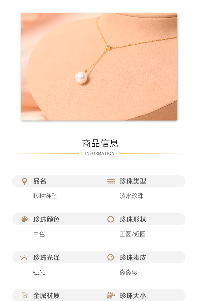 金 18K海水珍珠吊珠链8.5-9mm 106333 Z