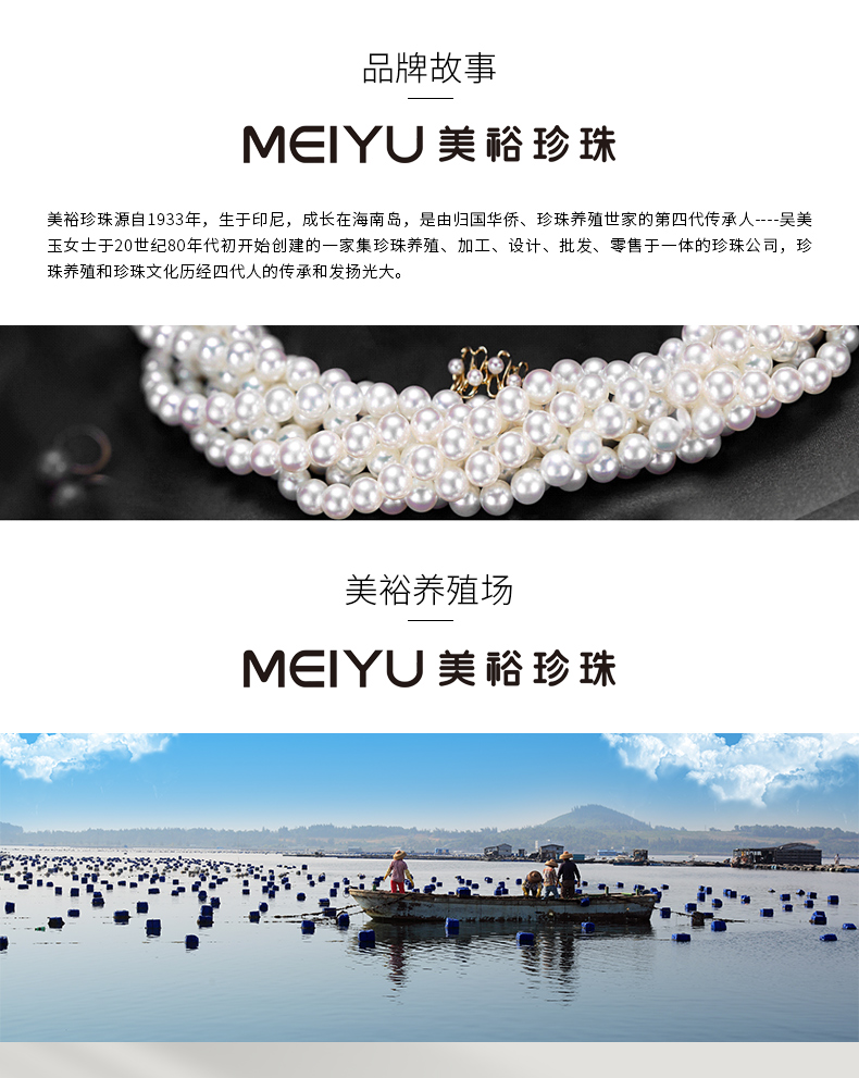 珍珠世家,代代相传。美裕珍珠,1933年起源于印尼,成长于海南岛。依托海南资源优势和自身专业优势,以经营南珠、南洋珠为主,专注于珍珠文化的挖掘和传播,把珍珠代表的爱意,永不间断地传承下去。