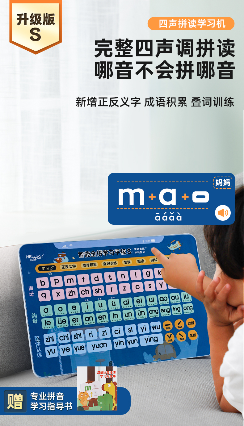 【有了它!拼音都变简单了】升级S版猫贝乐语文全拼学习神器挂图自然拼读早教机音标听读儿童双语有声点读机玩具