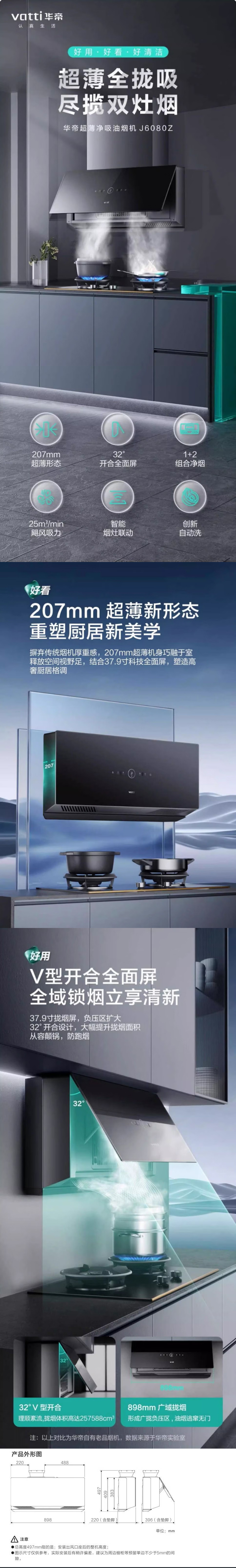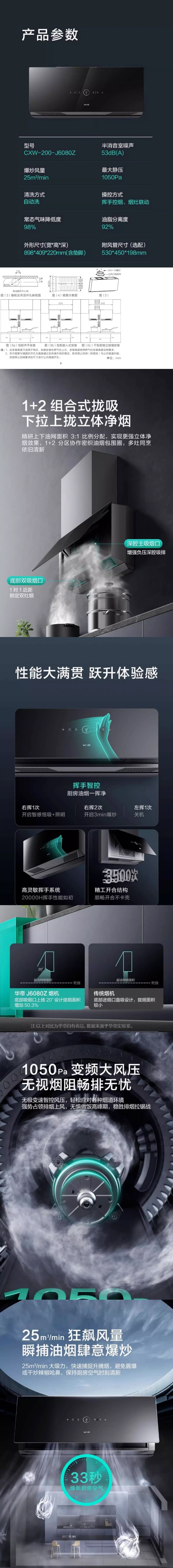 华帝(VATTI)/华帝J6080Z(510685)新品全面屏抽油烟机大吸力侧吸式超薄 J6080Z
