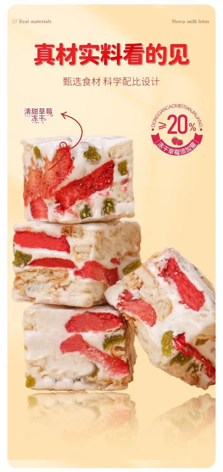 【真材实料果干❗️拉丝羊奶芙】采用特殊熬糖工艺,质地软糯 Q 弹,轻轻一拉就能看到明显拉丝,口感绵密不粘牙,冻干休闲零食网红糕点点心糕点好吃解馋酥脆QQ
