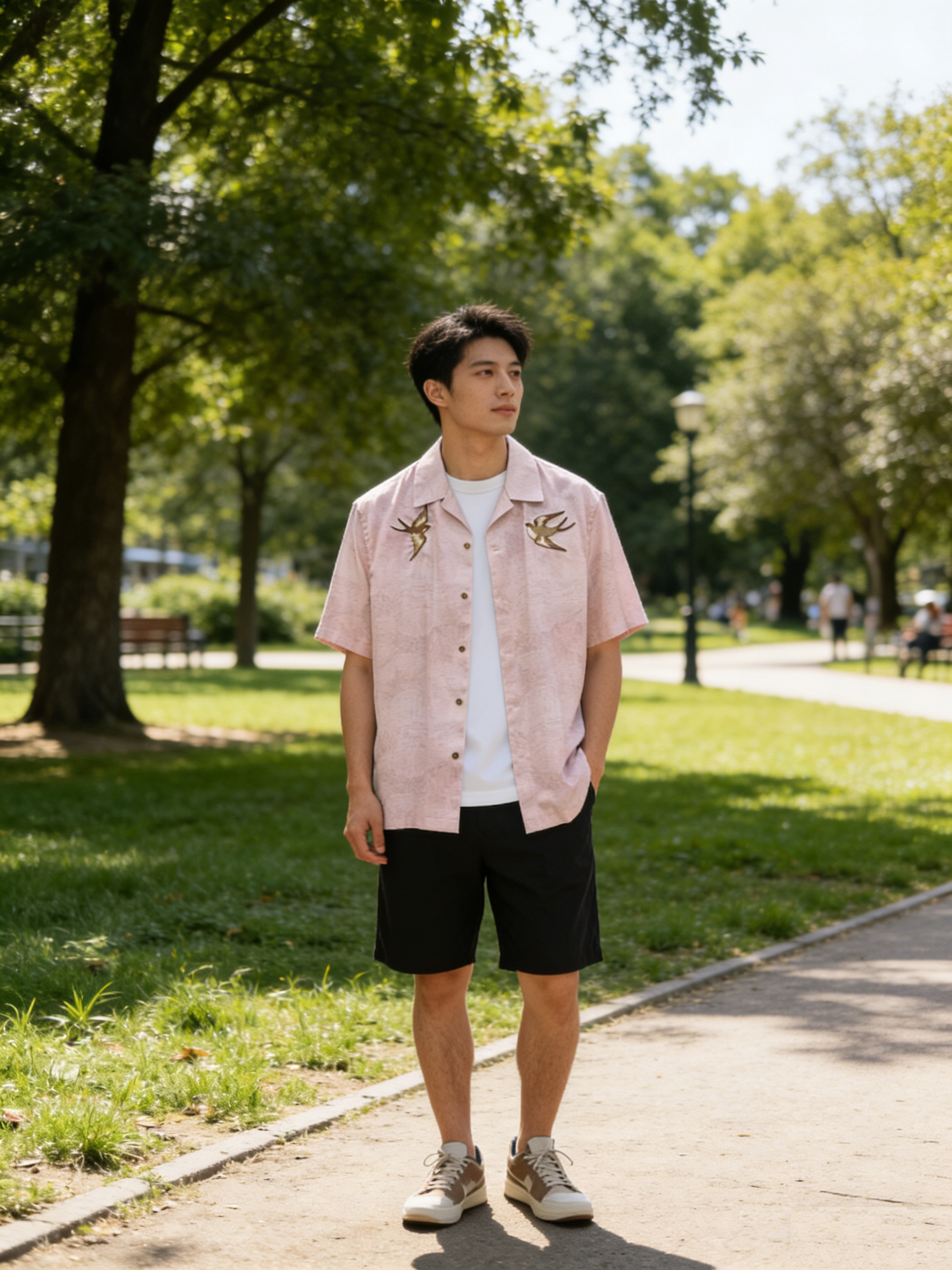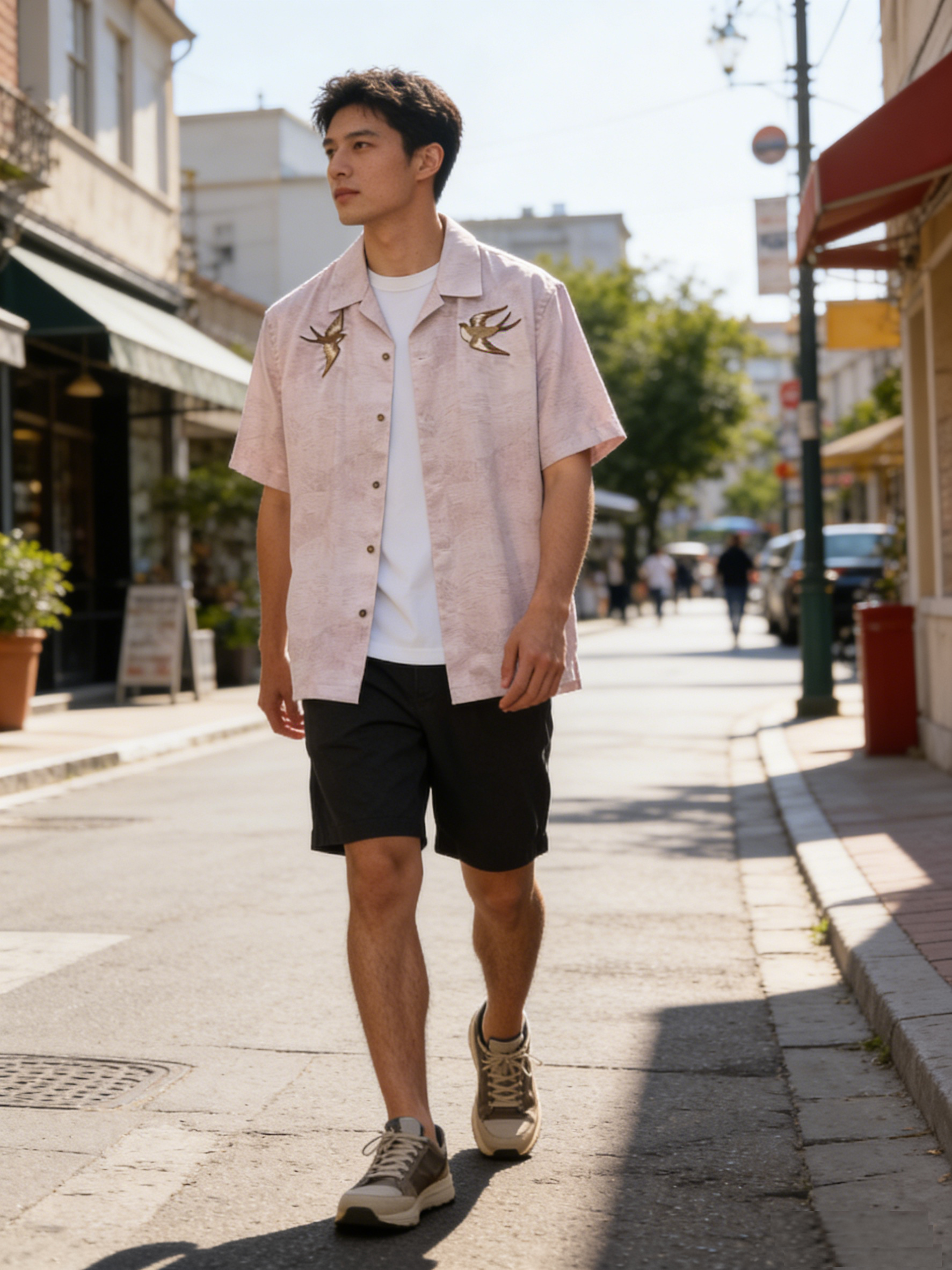 G2000男装SS26商场新款【BLACK】精纺全棉剌绣休闲短袖衬衫61430584