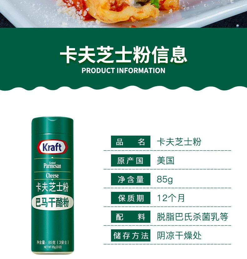 卡夫芝士粉 巴马臣奶酪粉 85g意面披萨奶酪调味粉 美国进口 原装