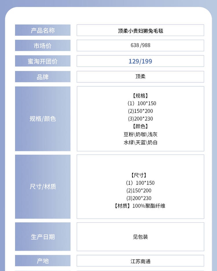 园园亲选南通家纺顶柔小贵妇濑兔毛毯!柔软紧致不掉毛冬日温暖加倍