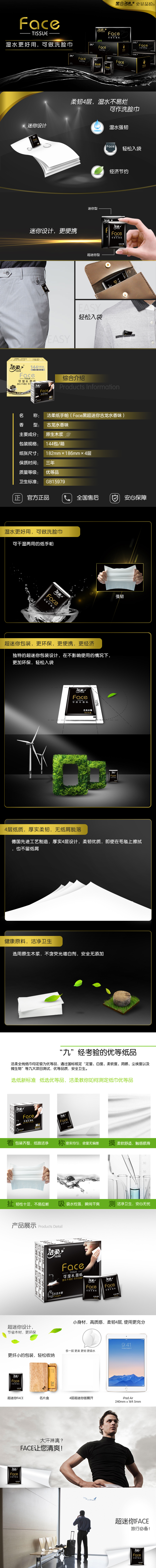 洁柔纸手帕(Face黑超迷你古龙水香味)6片4层(144包装)BU084-E4E